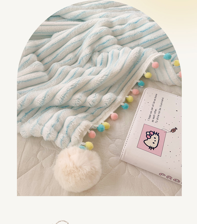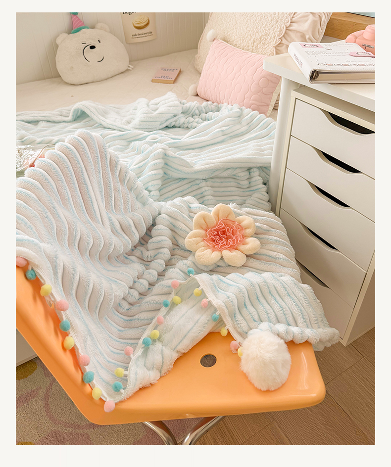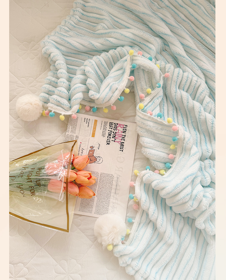 (总)潮邦创意家居 2025新款 奶芙绒流苏球毛毯,薄荷绿,焦糖咖,绵云白,浅蓝灰,深暮灰,甜莓粉