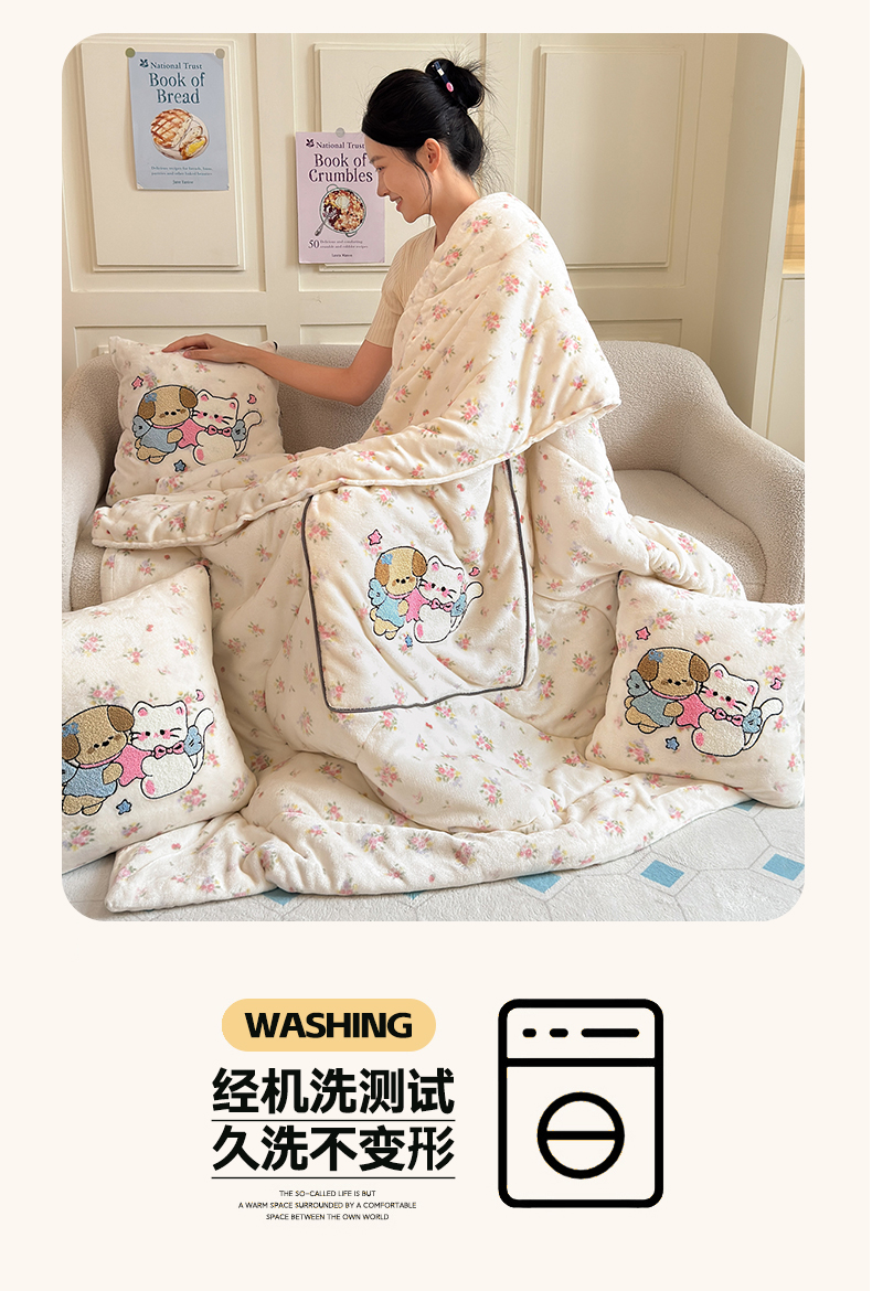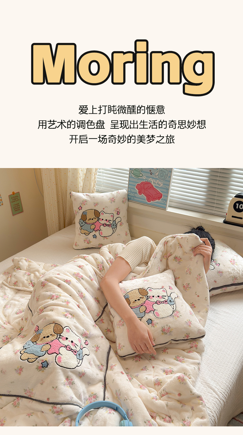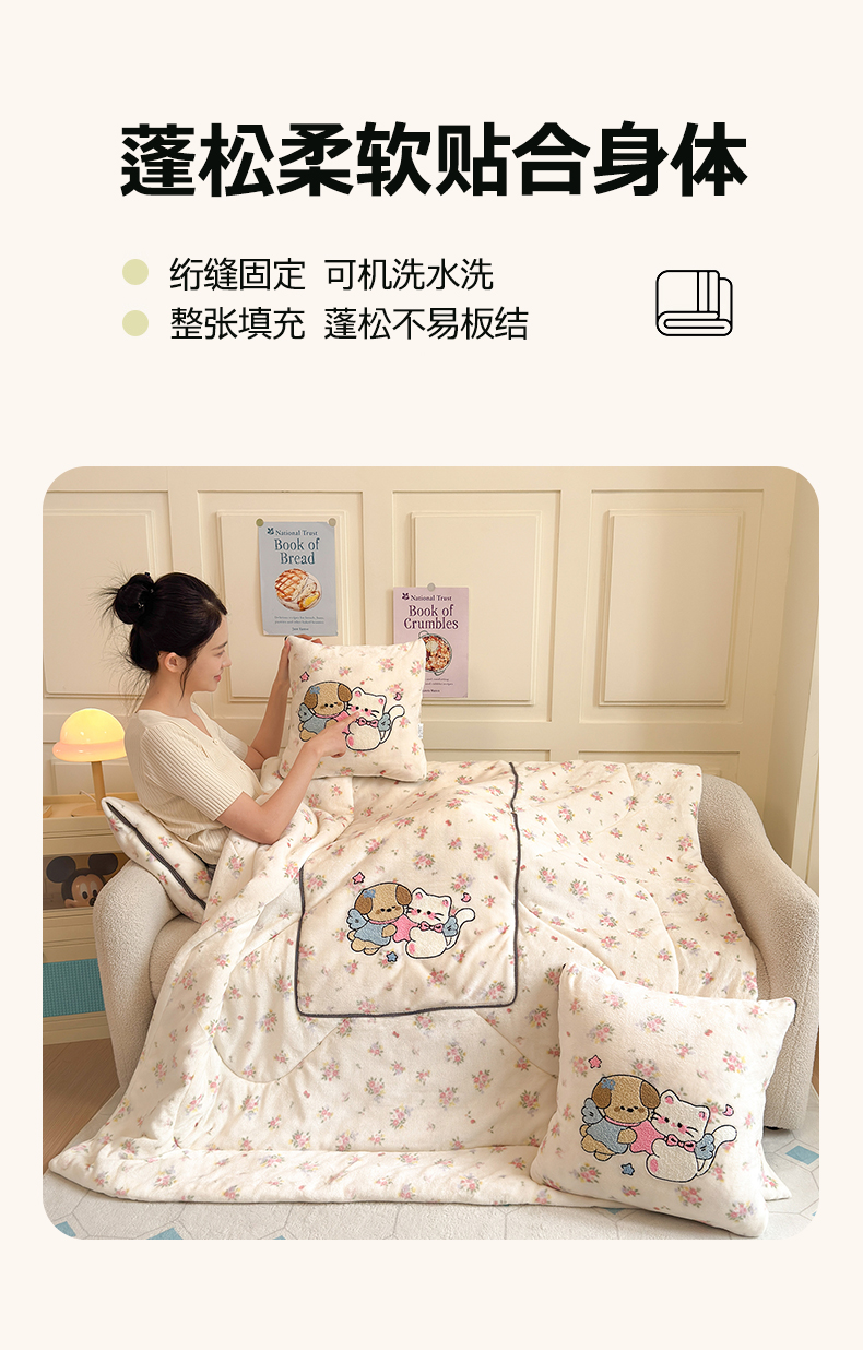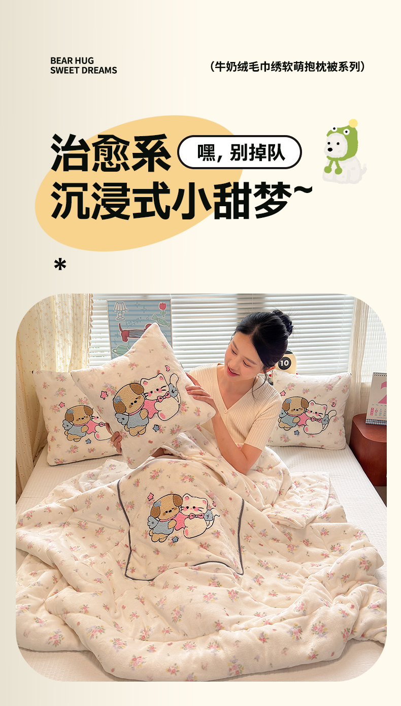 商品名称:铭宣家居 2025新款牛奶绒毛巾绣软萌抱枕被 梦境宝贝