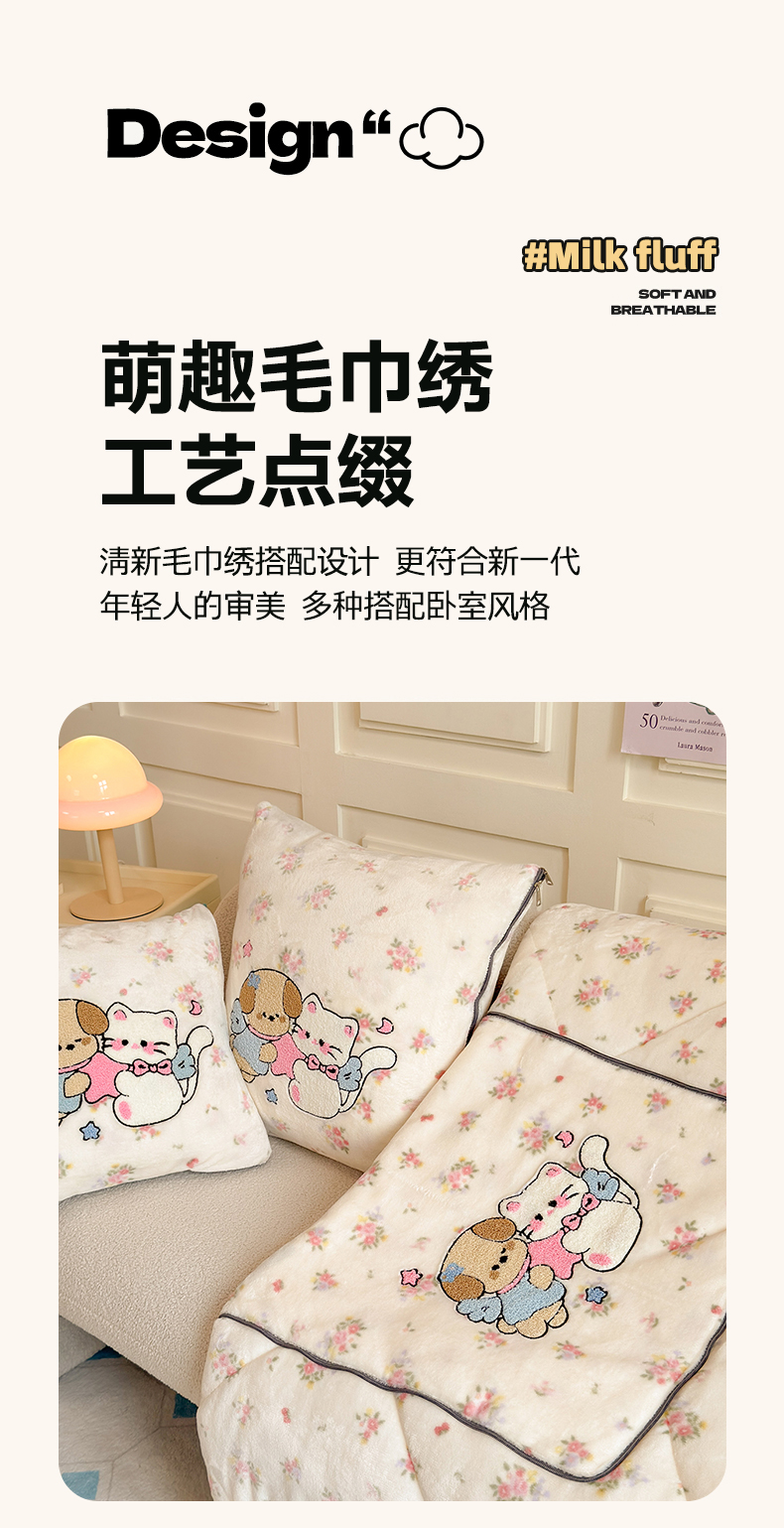 铭宣家居 2025新款牛奶绒毛巾绣软萌抱枕被 梦境宝贝