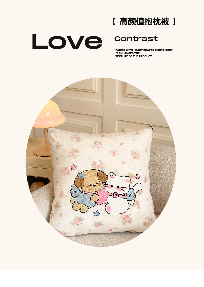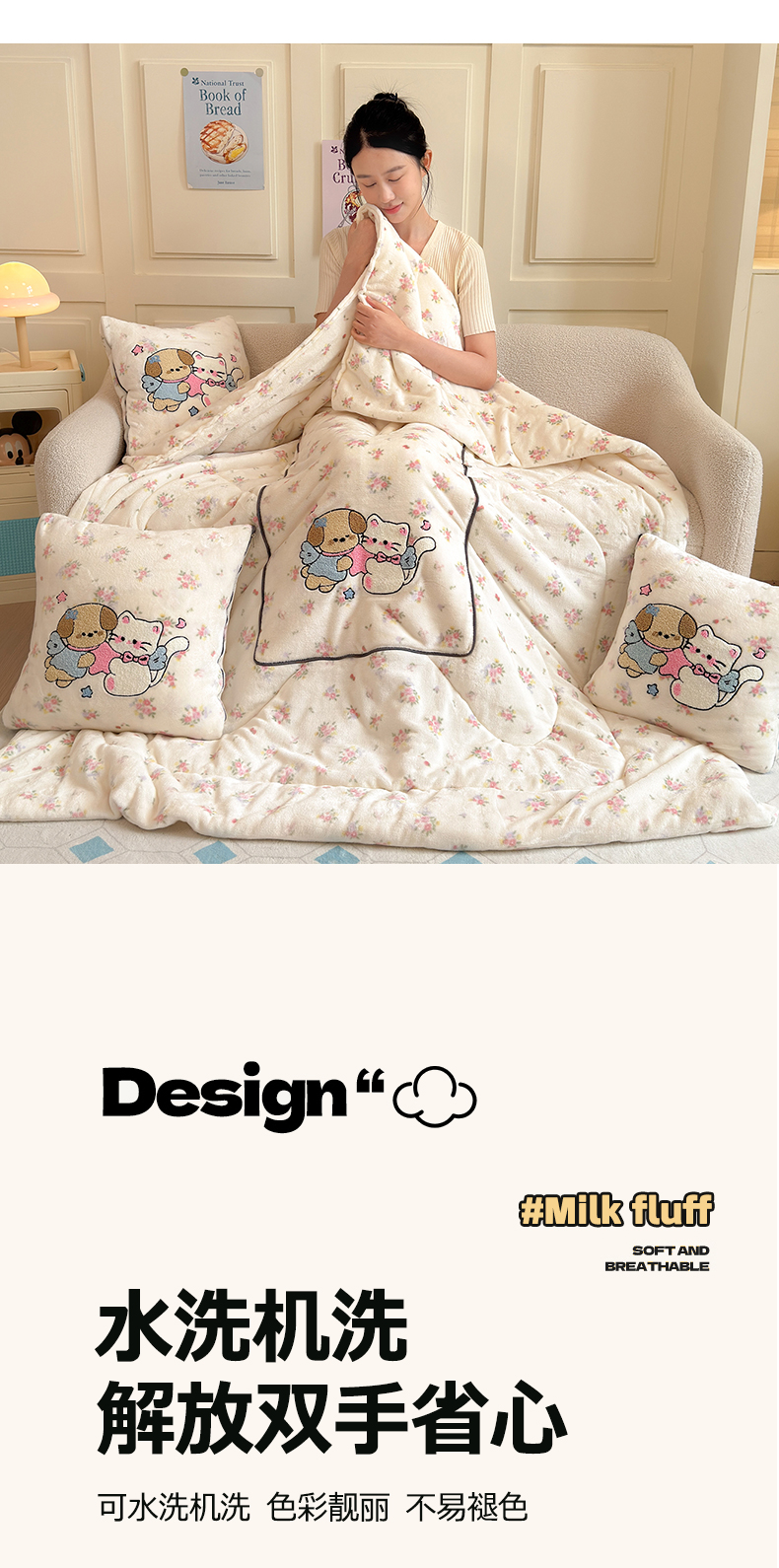 (总)铭宣家居 2025新款牛奶绒毛巾绣软萌抱枕被,格纹狗狗,红格汪趣,花喵精灵,梦境宝贝,企鹅趣蓝,星星皮卡,组合