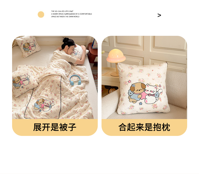 铭宣家居 2025新增花型 亲肤柔软棉被抱枕被-字母小狗,字母小狗