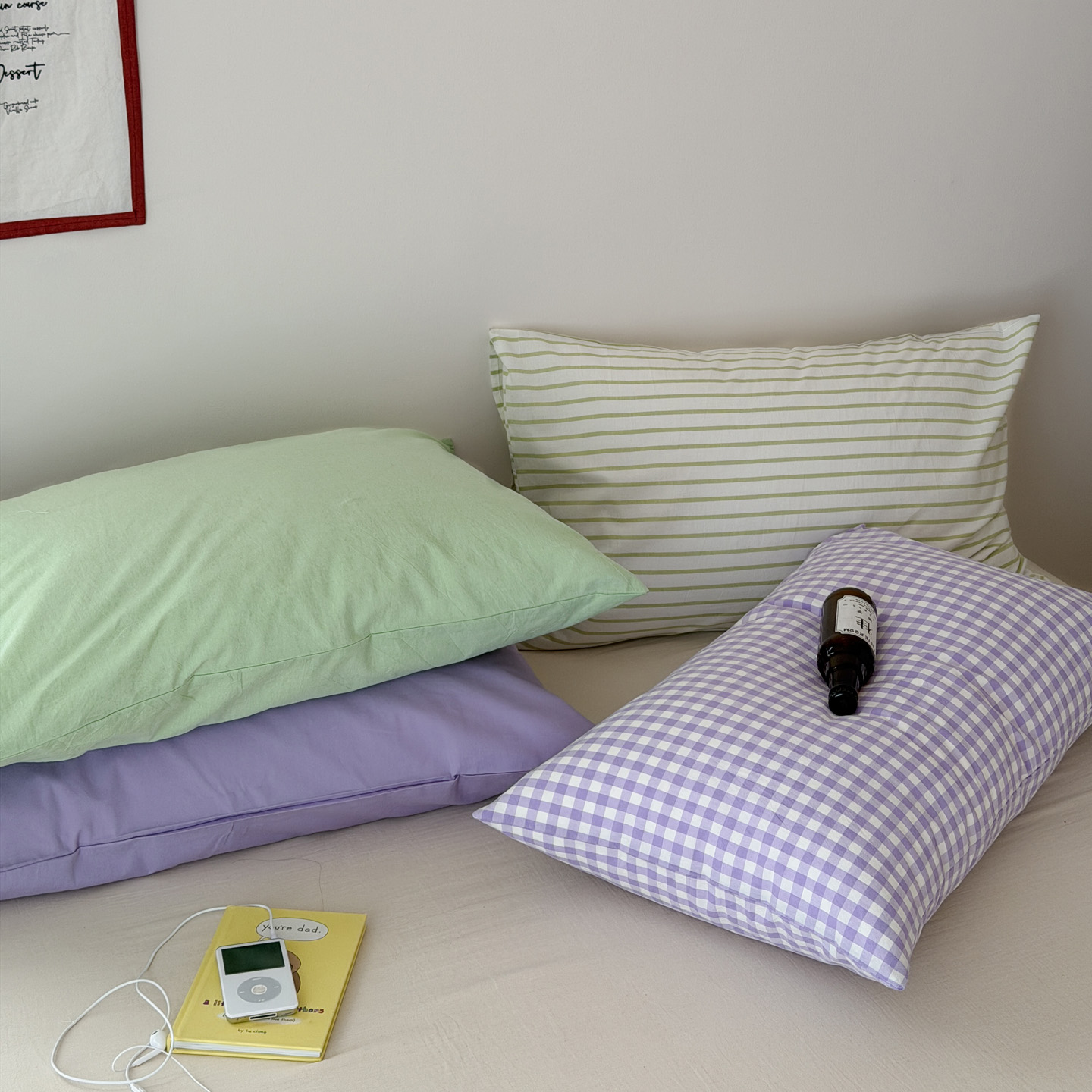 (总)艾沁2025新款全棉色织水洗棉西瓜色撞色四件套,西瓜派对(枕套红格+黄色),西瓜派对(枕套红格+绿色),西瓜派对(枕套绿色+黄色),西瓜派对(枕套樱桃一对)