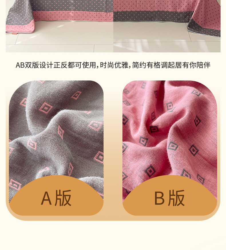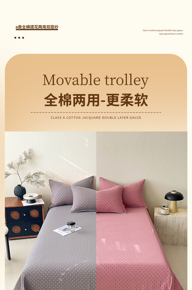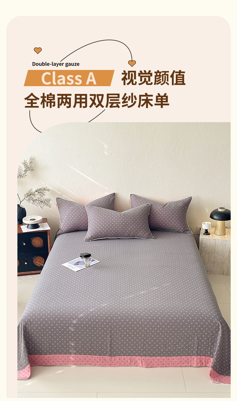 商品名称:春皖家纺 2026春夏新款(正反两用)A类提花双层纱单床单 回家-粉灰