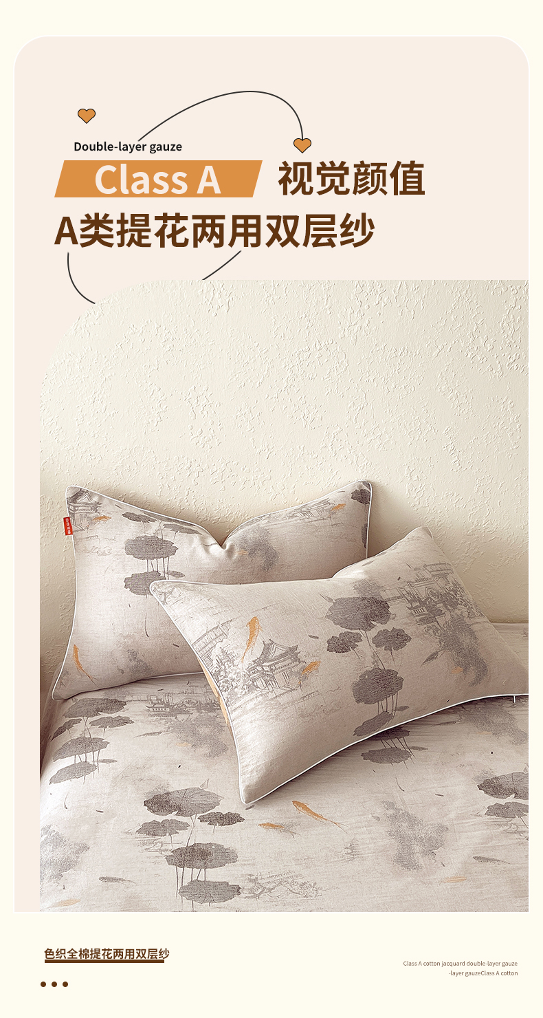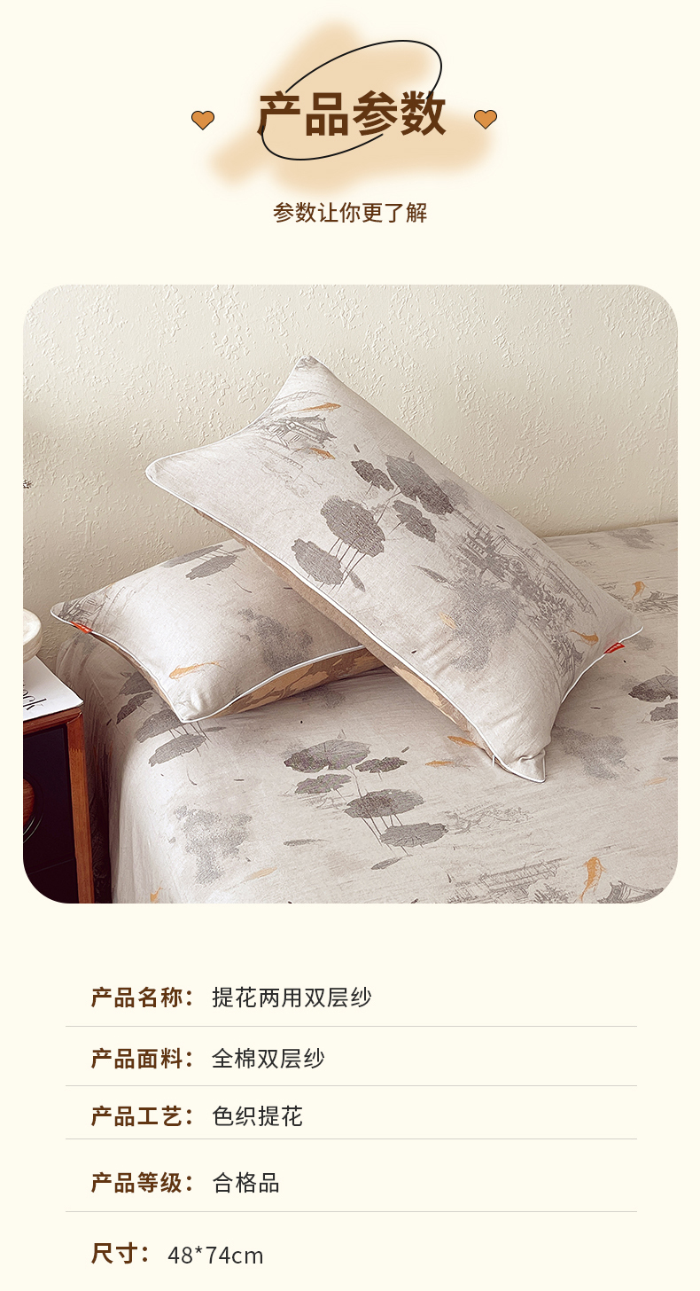 (总)春皖家纺 2026春夏新款(正反两用)A类提花双层纱单枕套