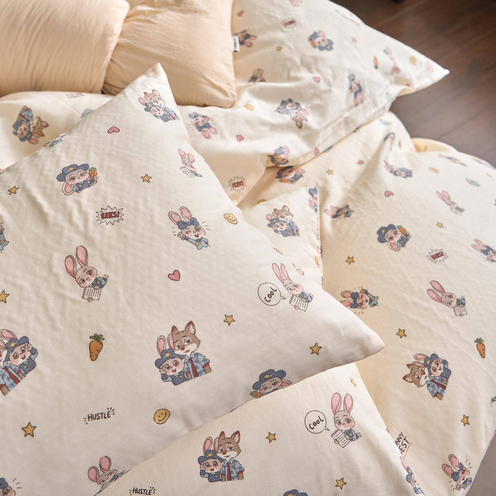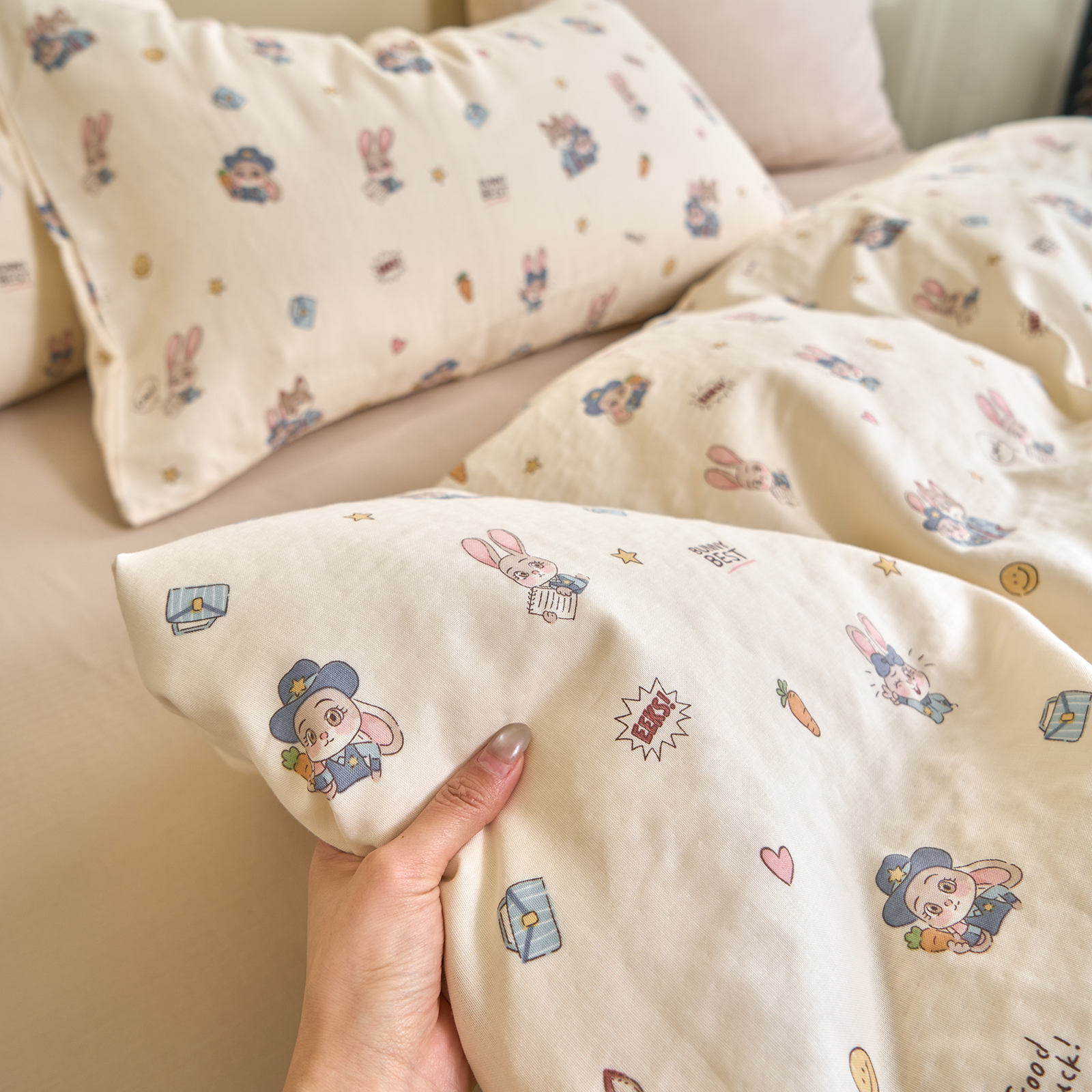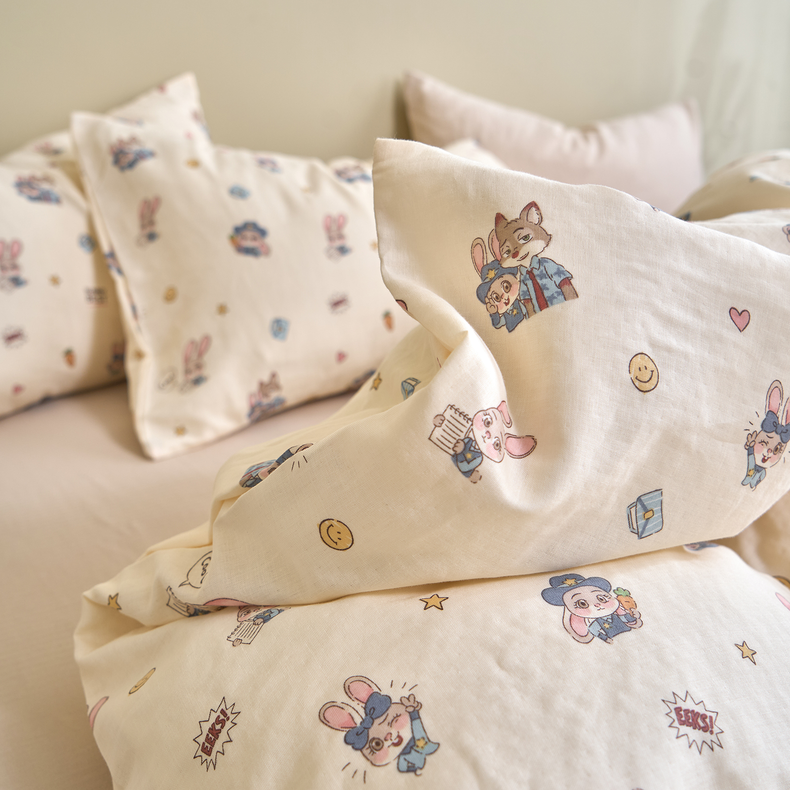 商品名称:洋铭区(原狠狠爱) 2026春季新款简约全棉 无边双层纱 四件套系列 疯狂小可爱