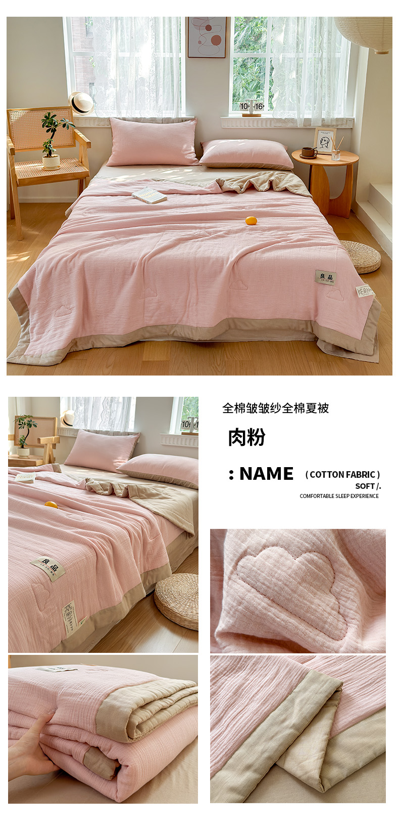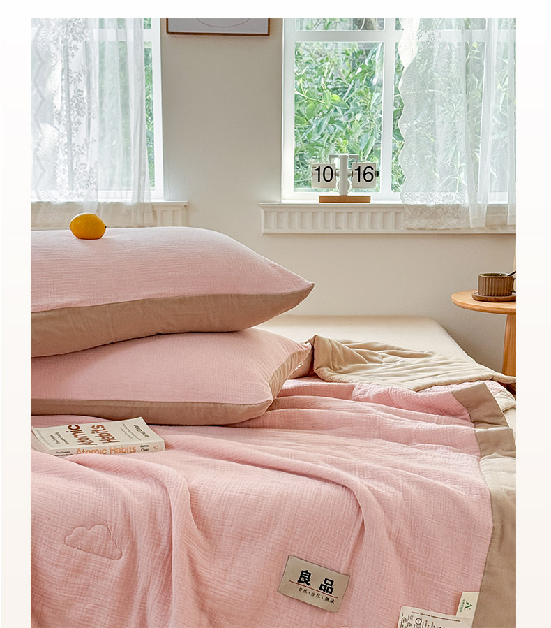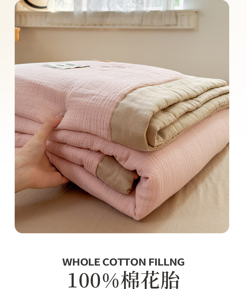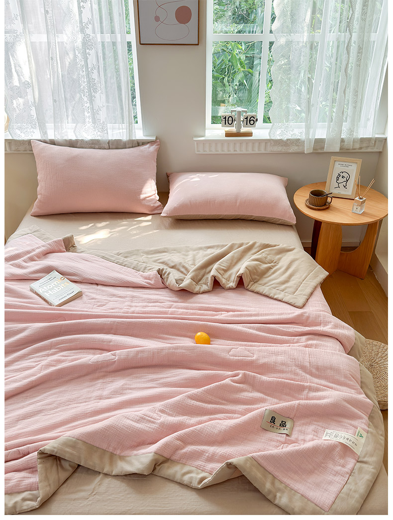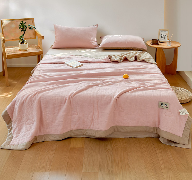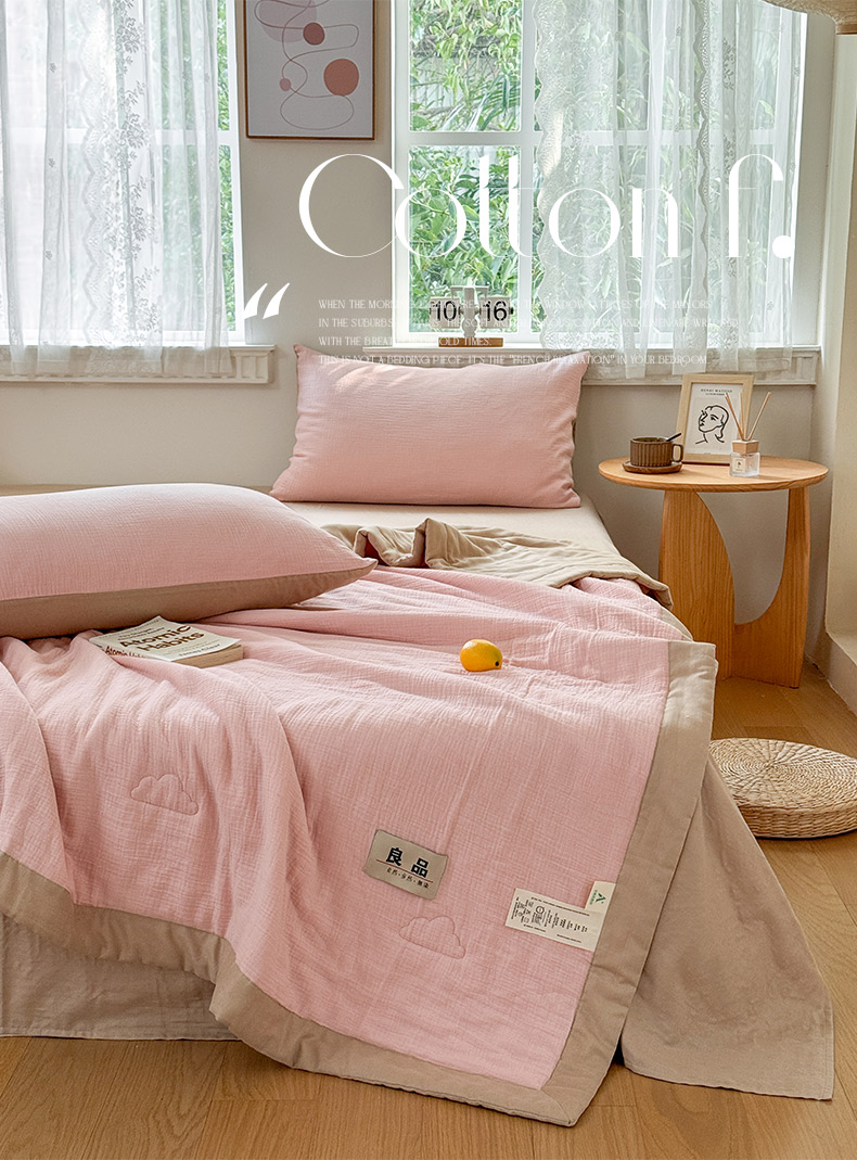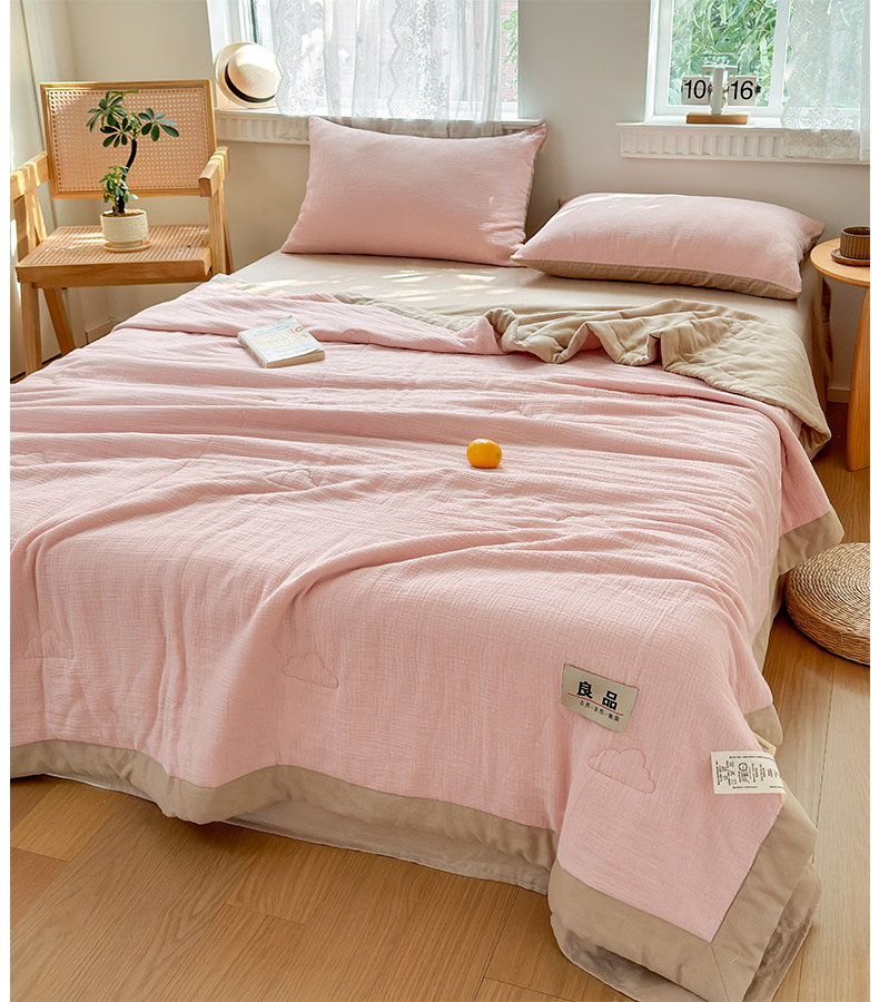 • 91家纺网 家纺一手货源 找家纺 雯雨家纺 2026新款里外全棉皱皱纱棉花夏被夏凉被空调被 全棉皱皱纱-肉粉