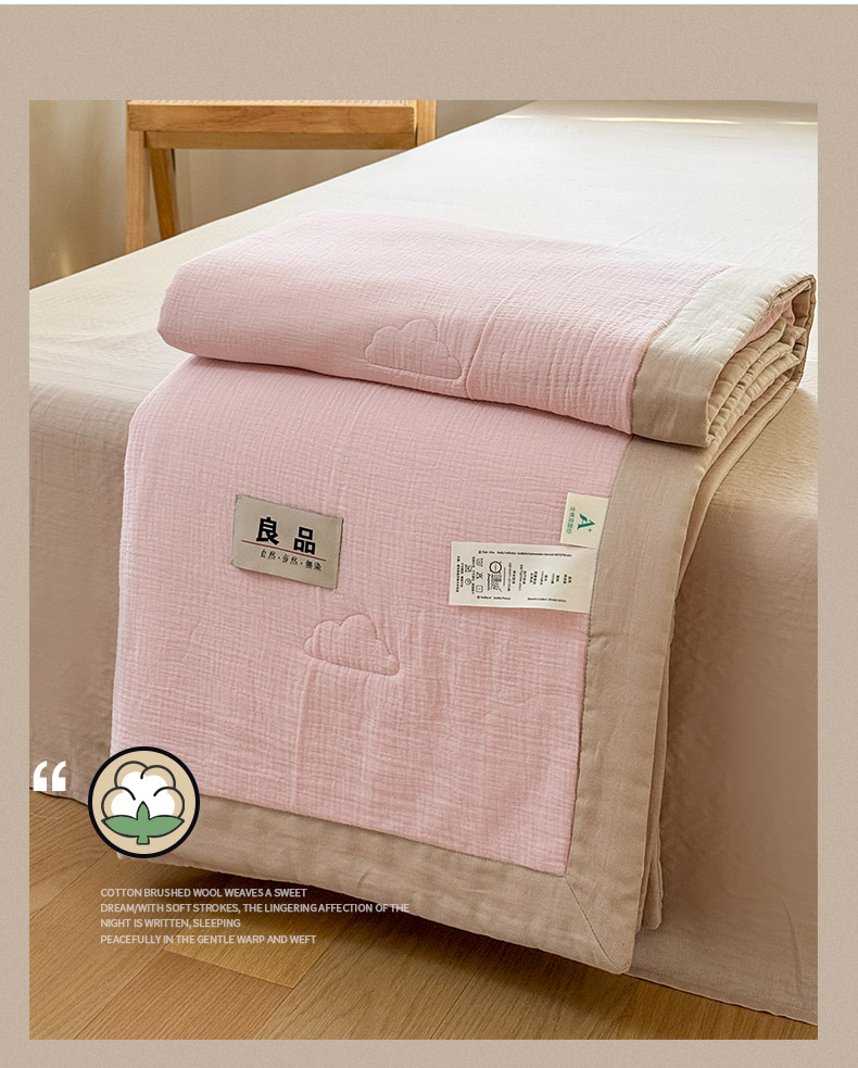 当前位置: 91家纺网 > 商品网购 > 被子 > 夏被 > 雯雨家纺 2026新款里外全棉皱皱纱棉花夏被夏凉被空调被 全棉皱皱纱-肉粉