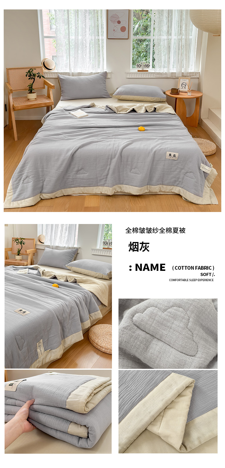 • 91家纺网 家纺一手货源 找家纺 (总)雯雨家纺 2026新款里外全棉皱皱纱棉花夏被夏凉被空调被,全棉皱皱纱-本白,全棉皱皱纱-豆绿,全棉皱皱纱-米褐色,全棉皱皱纱-肉粉,全棉皱皱纱-天蓝,全棉皱皱纱-烟灰