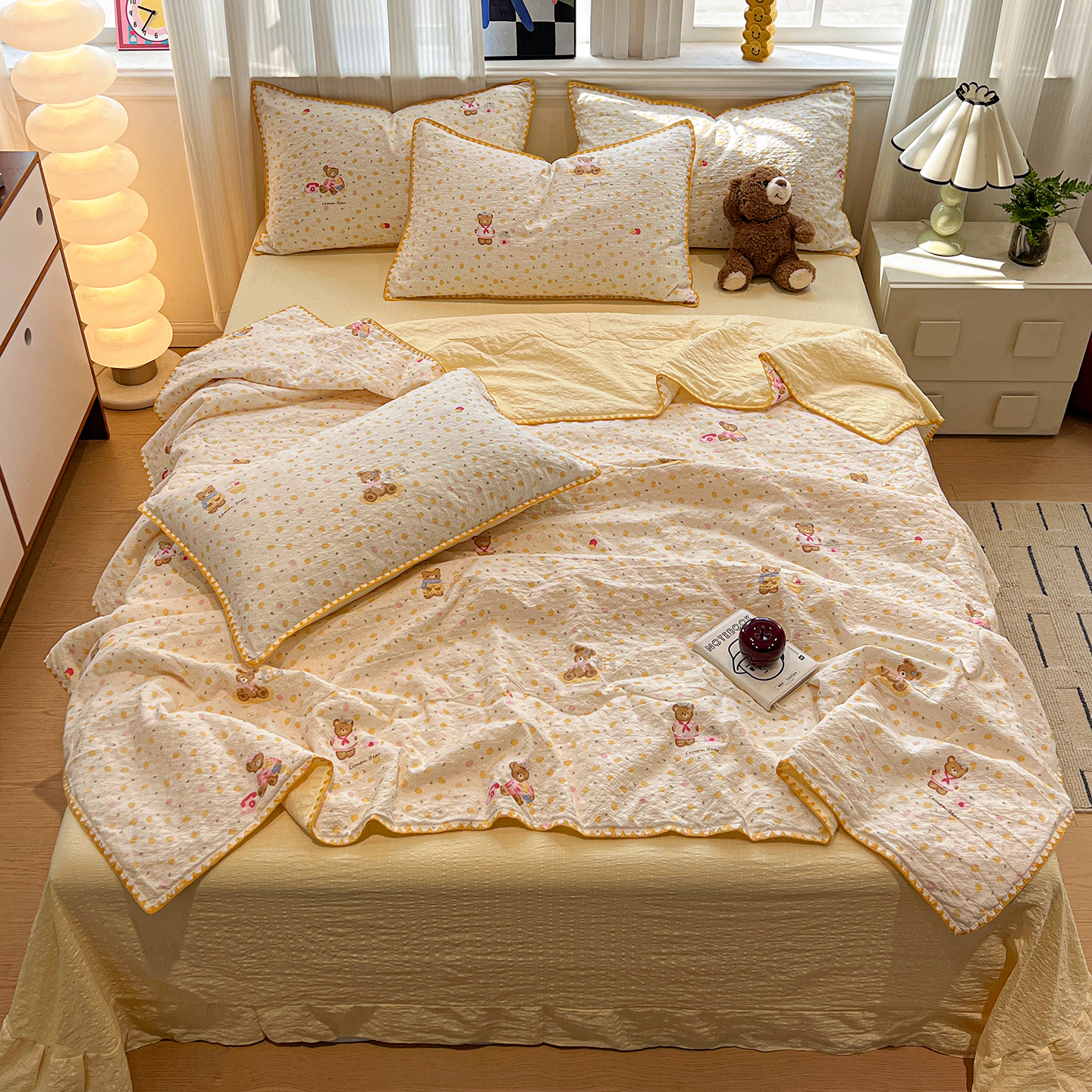 (总)2026新款云感皱皱纱全棉花边款夏被四件套,百福兰,春天里,春晓,豆蔻,蝴蝶梦,可颂,兰黛,山野栀子,素颜,太妃糖,微凉薄荷,心动,遇见,芝士奶酪,紫爱心,紫苏,白茶绿,初恋,蜡笔画,莱茵河畔,桃花诺,小黑兔,春不晚,春日小熊,可颂,陌上花开,莫奈,若欢-绿,若欢紫色,舒芙蕾,田园拾趣-黄,兔小姐,郁金香小兔,波点小兔粉,波点小兔兰,花园兔,情人节,山野栀子,十里桃花粉,十里桃花紫,舒芙蕾,太妃糖,夏天,运动健将熊, 白月光,缤纷几何,格格西高地,海盐蓝小格,黎漫,木槿绿,奶油泡芙,欧若拉,桃夭,甜茶,小晴天,芋泥紫小格,紫色蝴蝶结