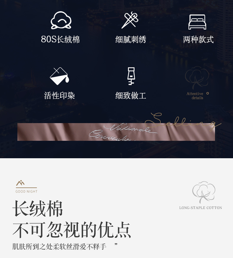 80支埃及长绒棉时尚绣四件套全棉四件套