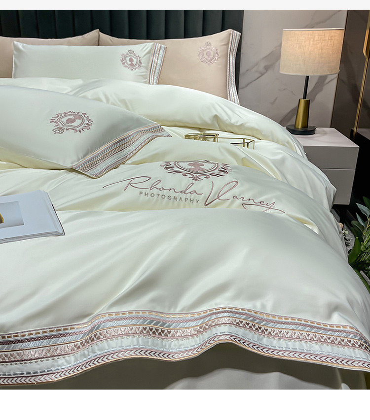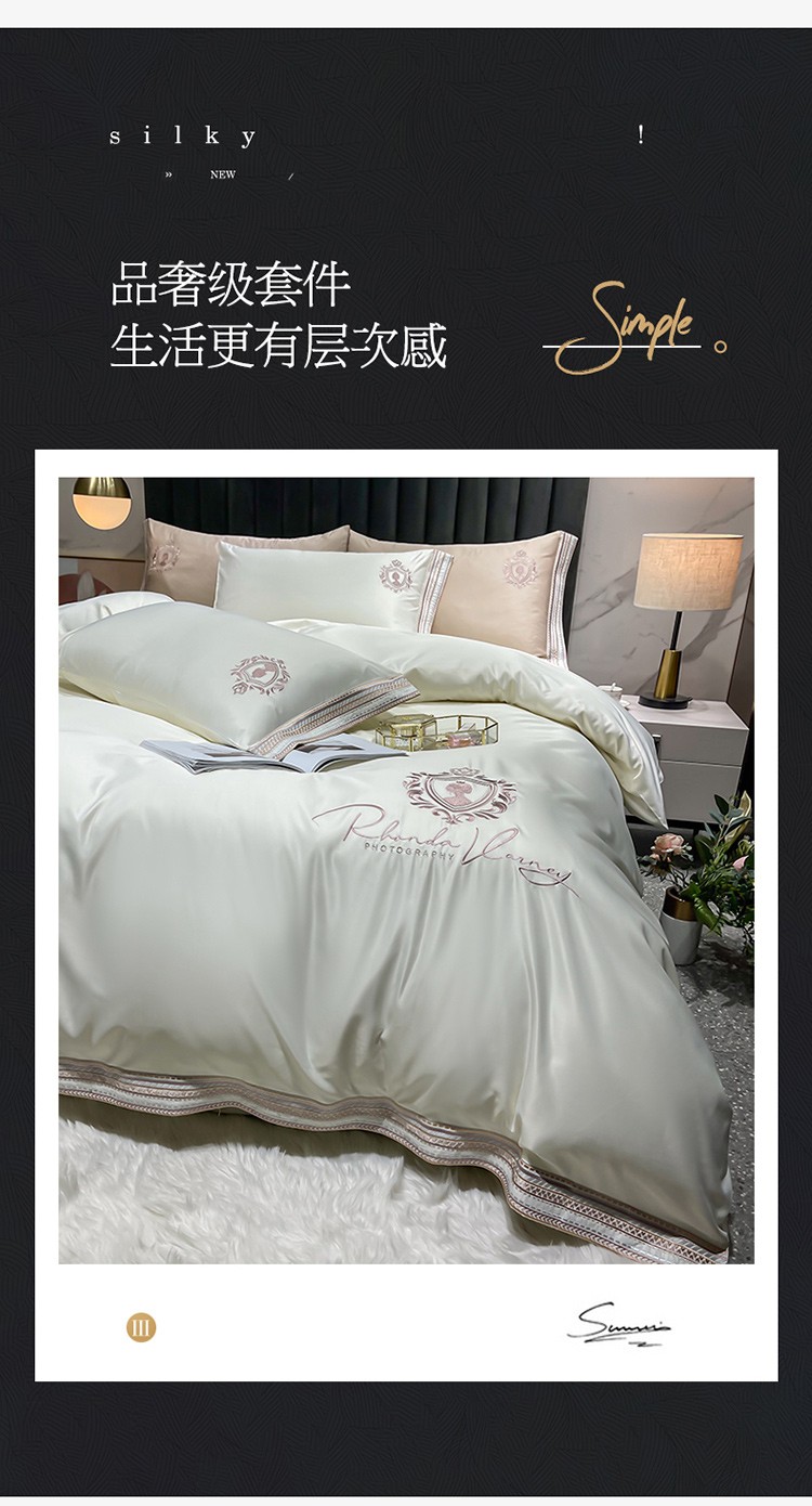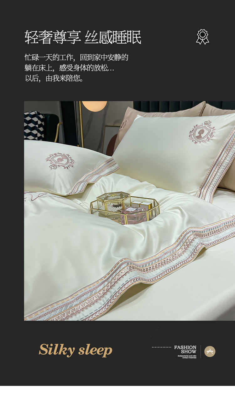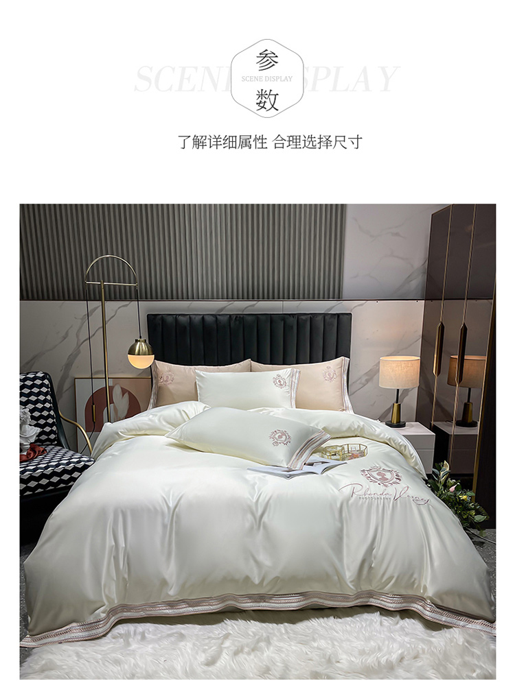 商品名称:安妮家居 2021新款水洗真丝刺绣四件套-奈雪系列 微微白