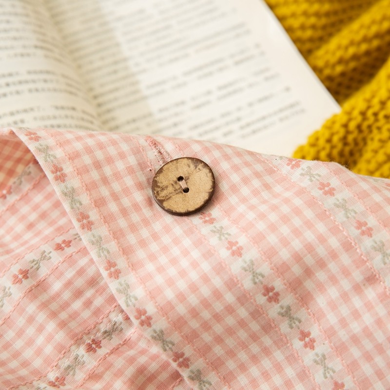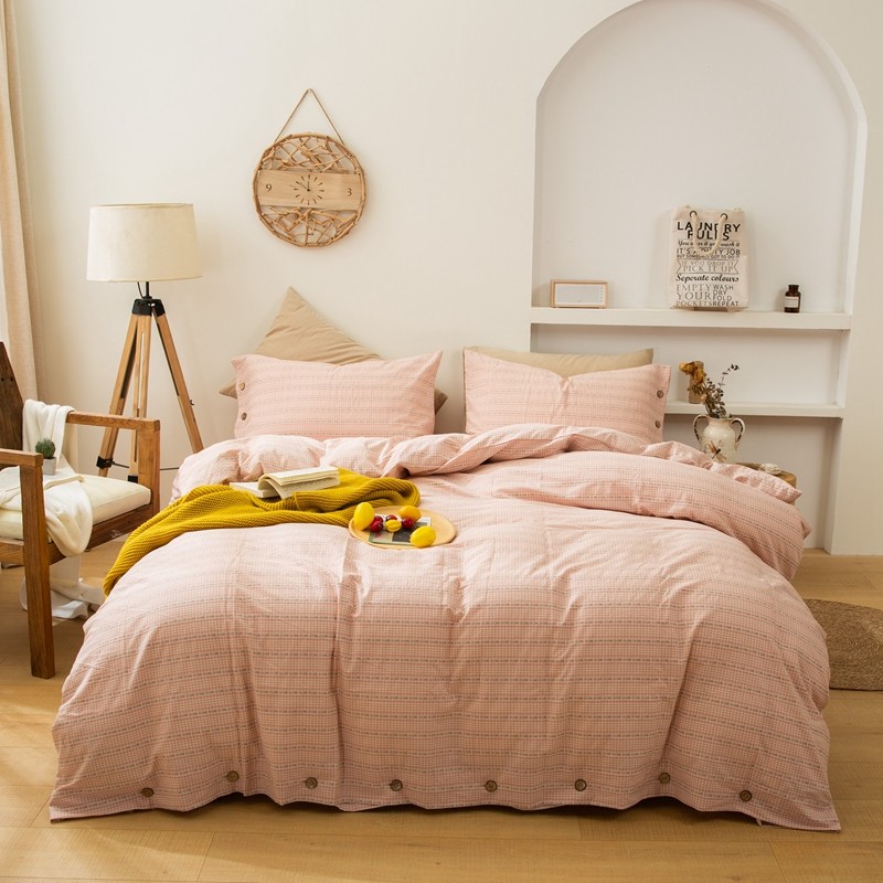 尚品本色 2022新款全棉色织水洗棉提花纽扣款四件套纯棉 洛洛可-粉