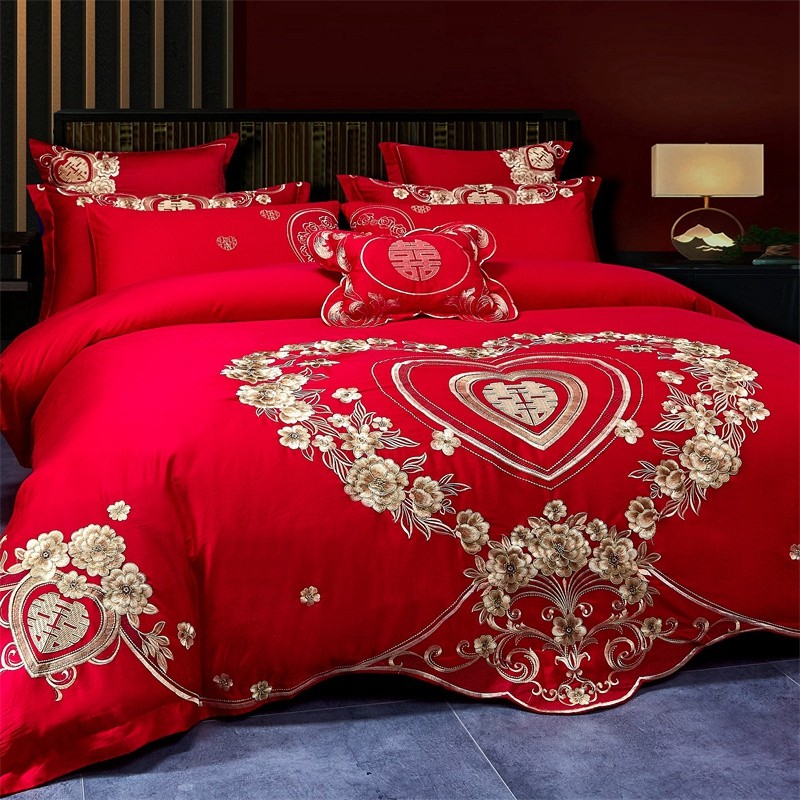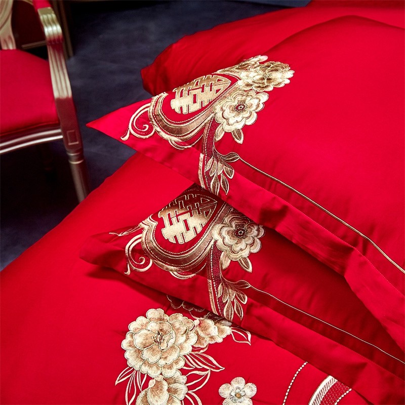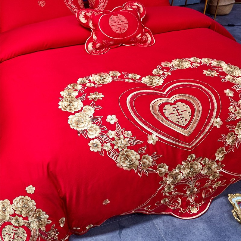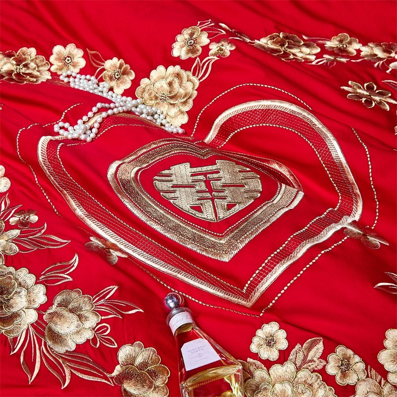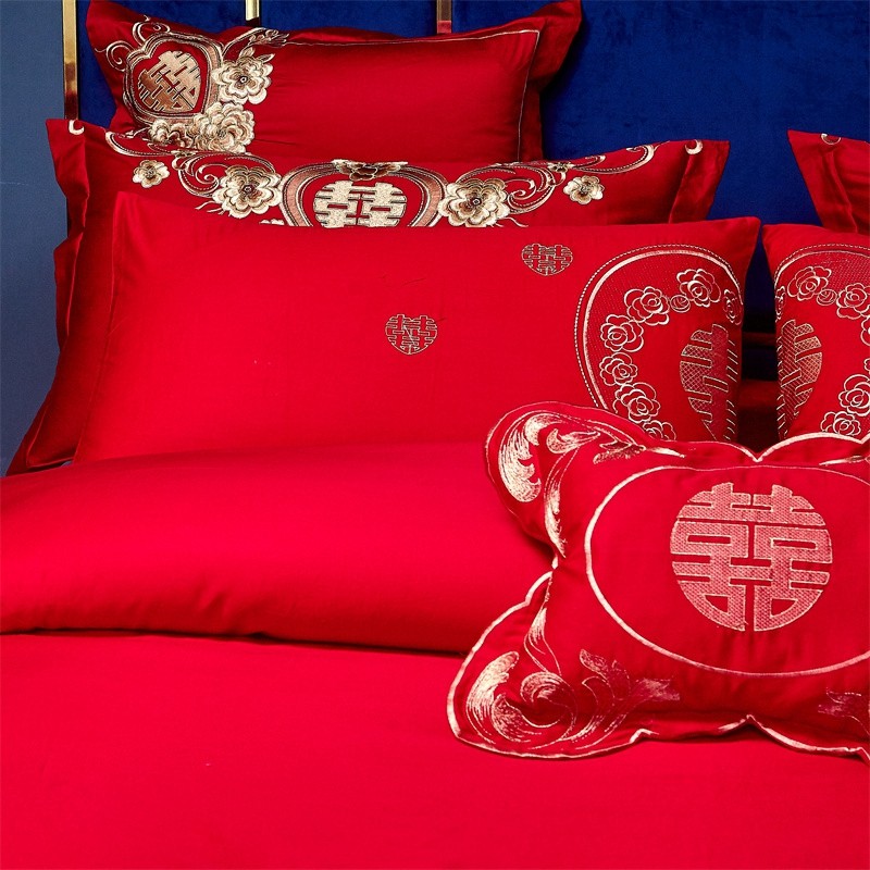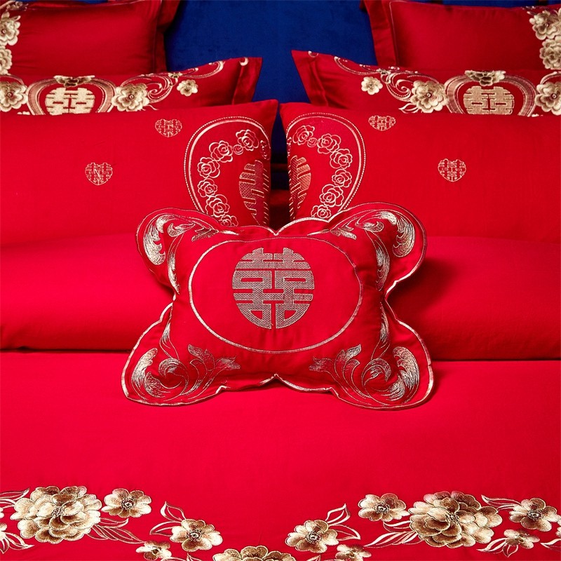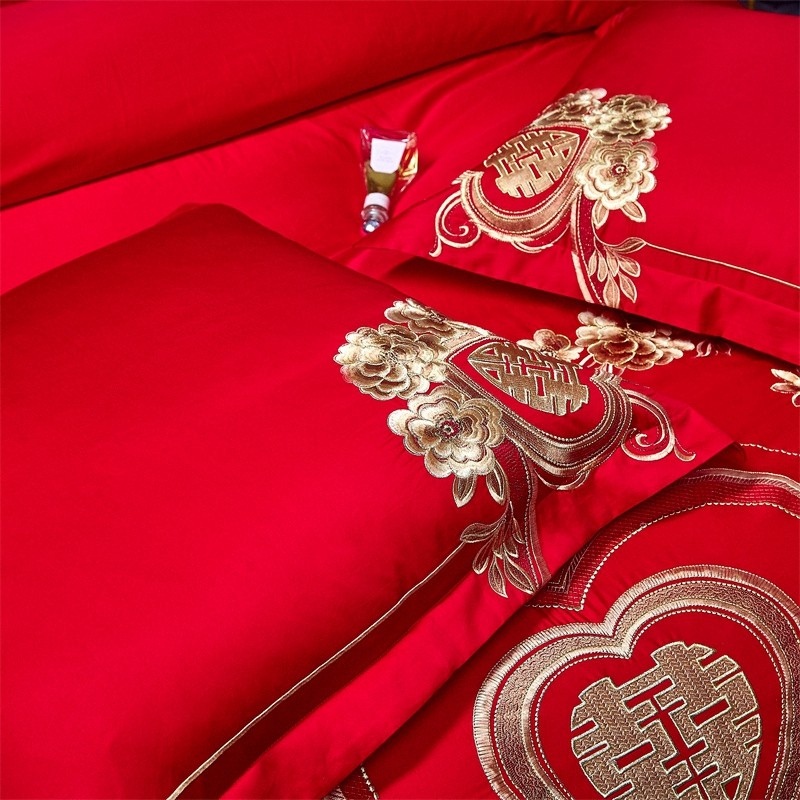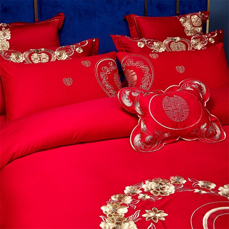 当前位置: 91家纺网 > 商品网购 > 床品套件 > 四件套 > 全棉普通四件套 > 布乐意 2025新款全棉绣花大红婚庆四件套多件套直播情投意合
