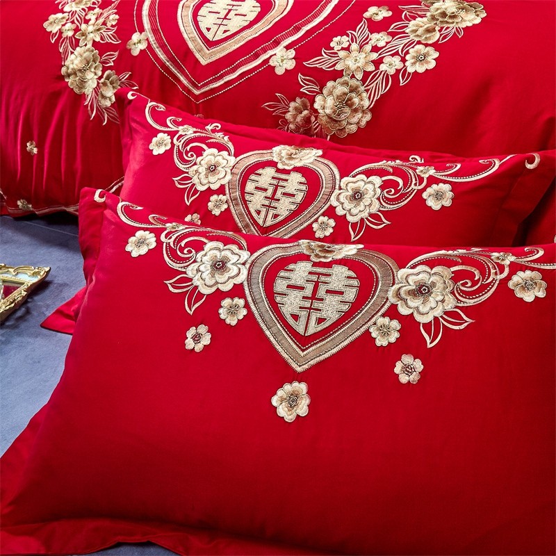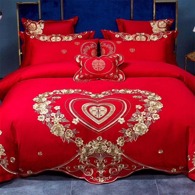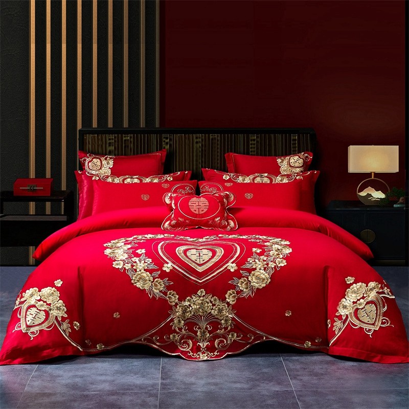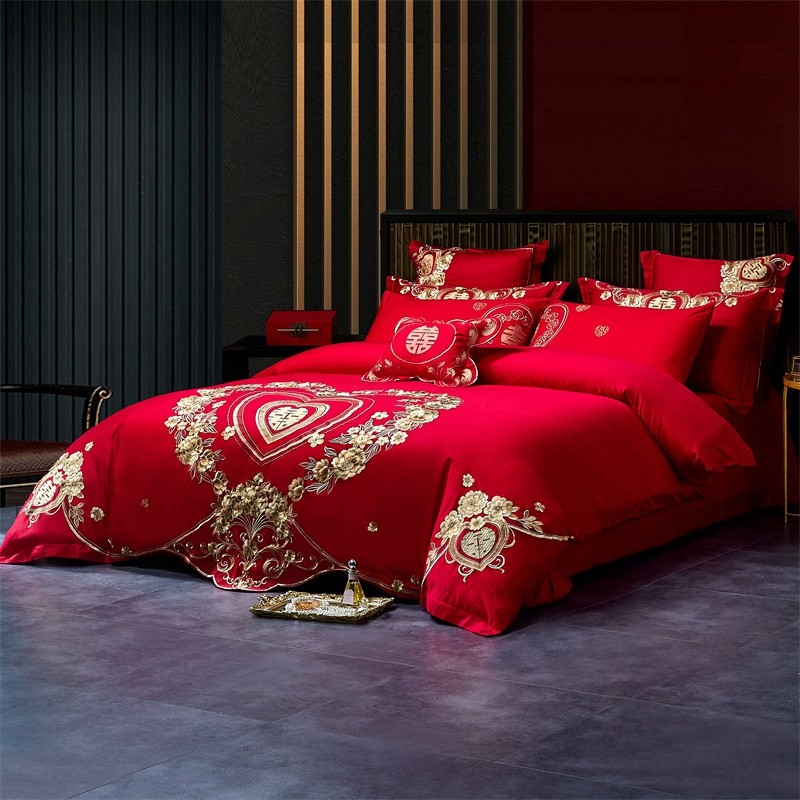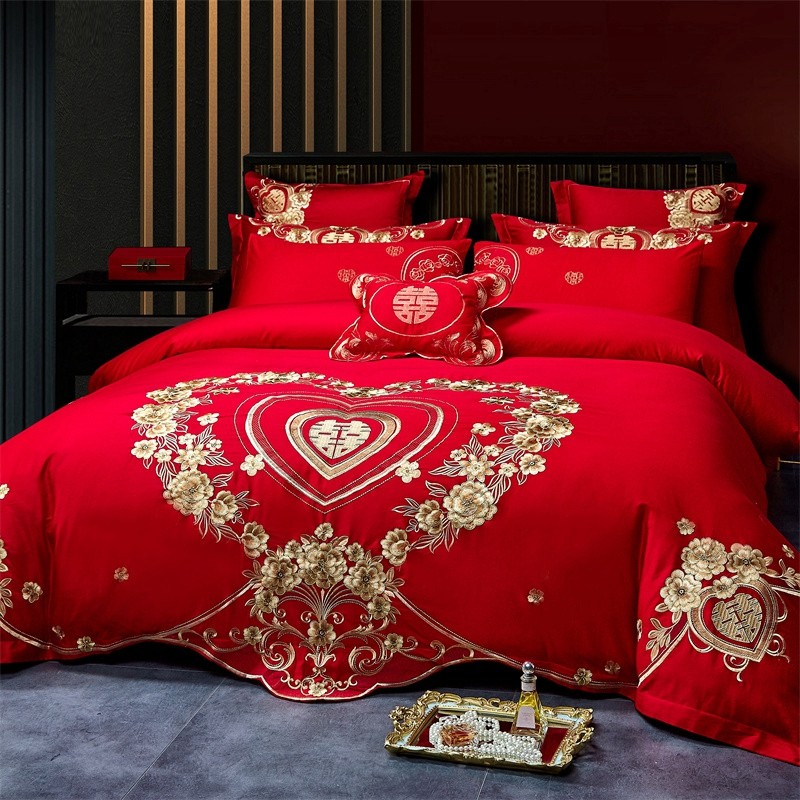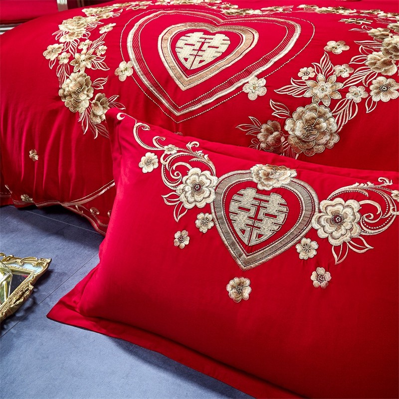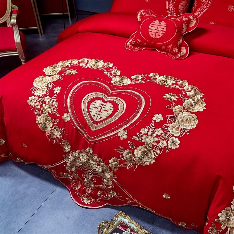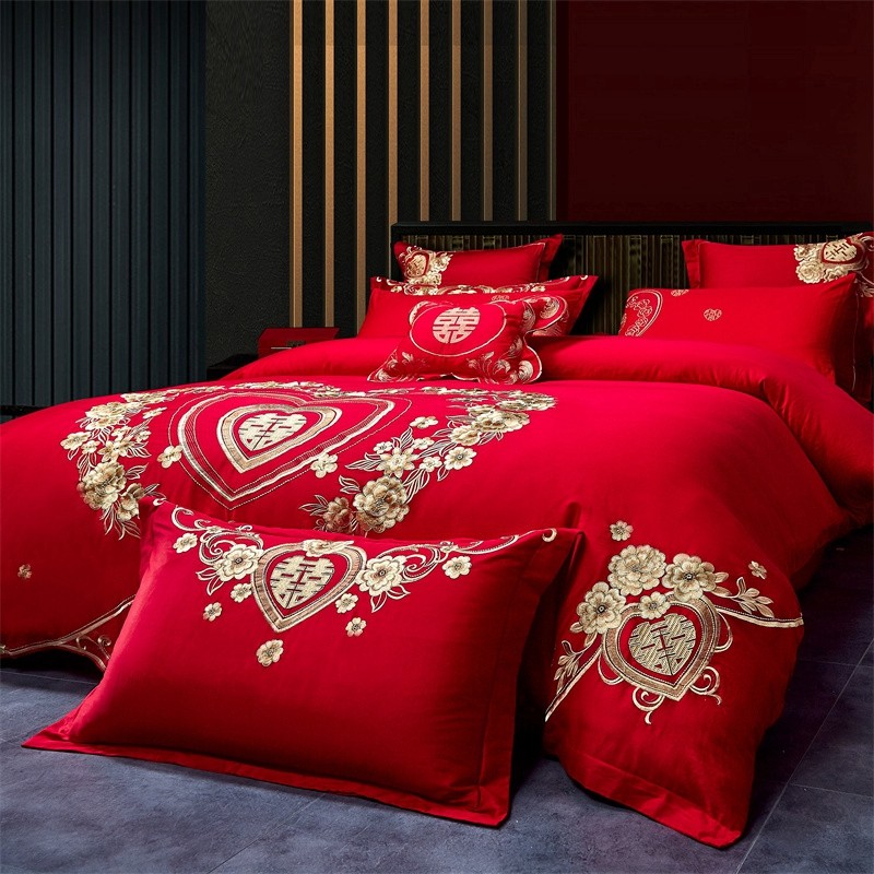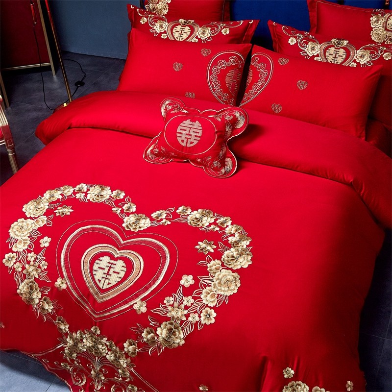 当前位置: 91家纺网 > 商品网购 > 床品套件 > 四件套 > 全棉普通四件套 > 布乐意 2025新款全棉绣花大红婚庆四件套多件套直播情投意合