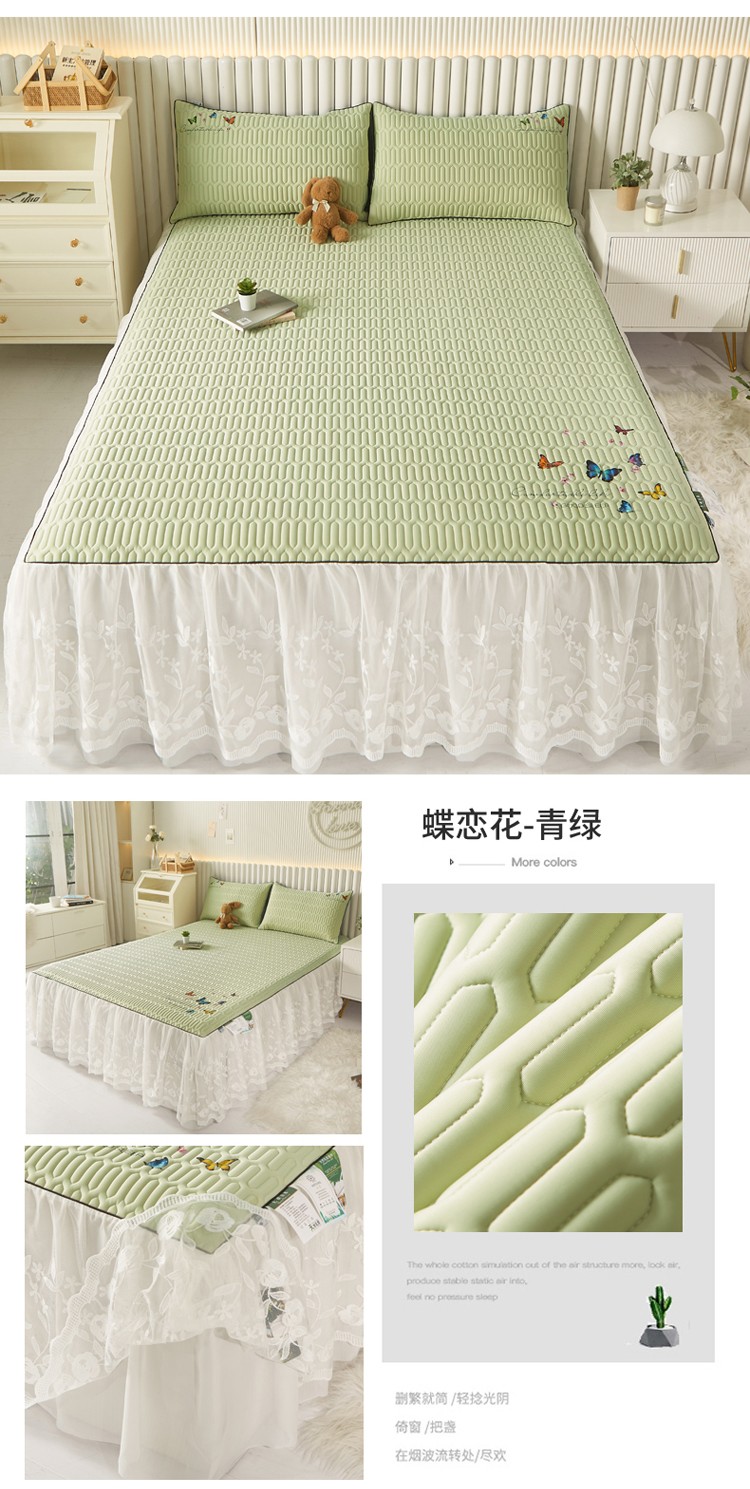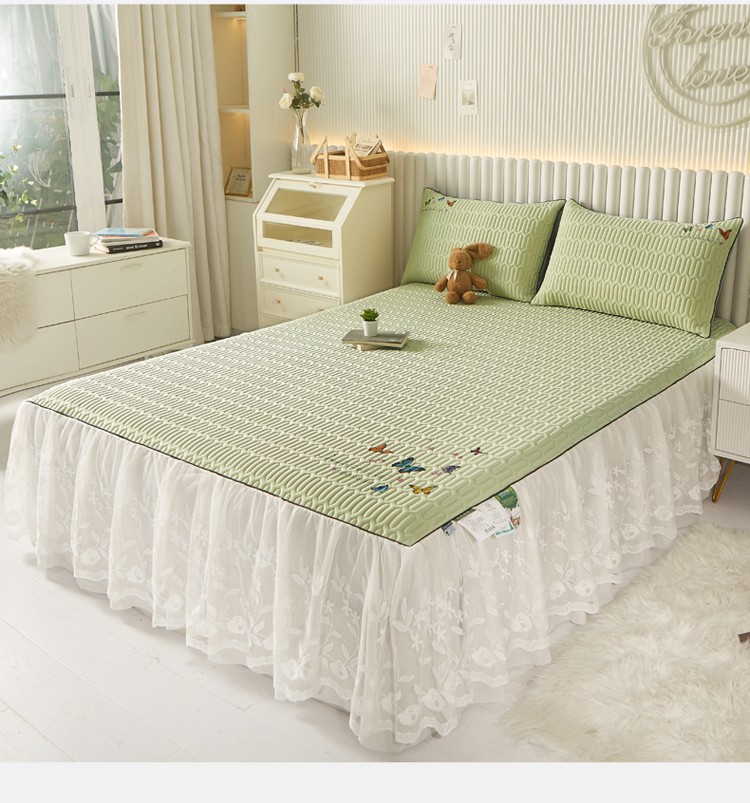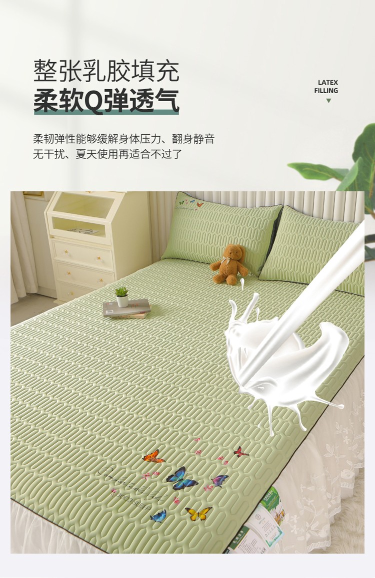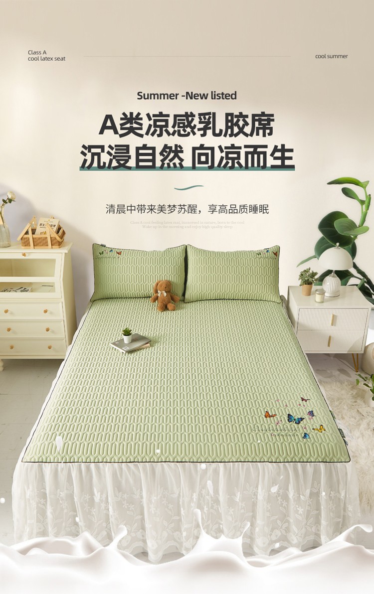 好眠好梦 2023新款A类乳胶床裙凉席-蝶恋花系列 青绿