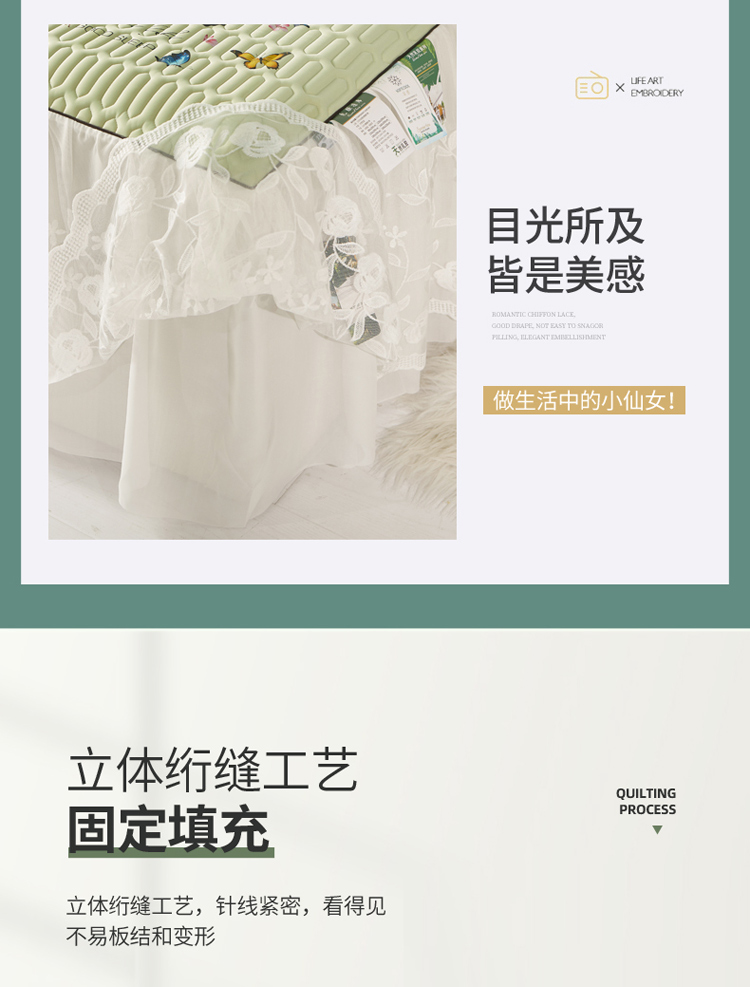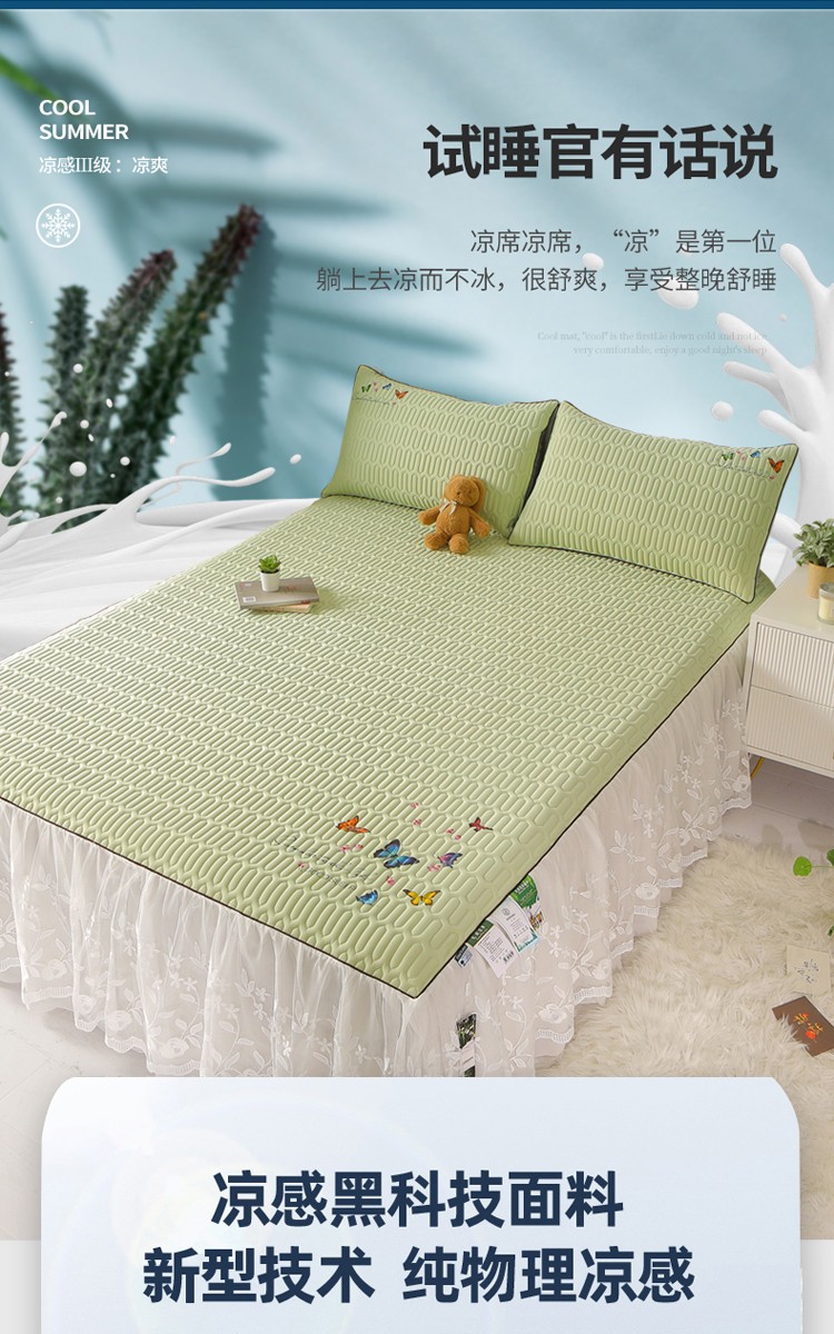 商品名称:好眠好梦 2023新款A类乳胶床裙凉席-蝶恋花系列 青绿