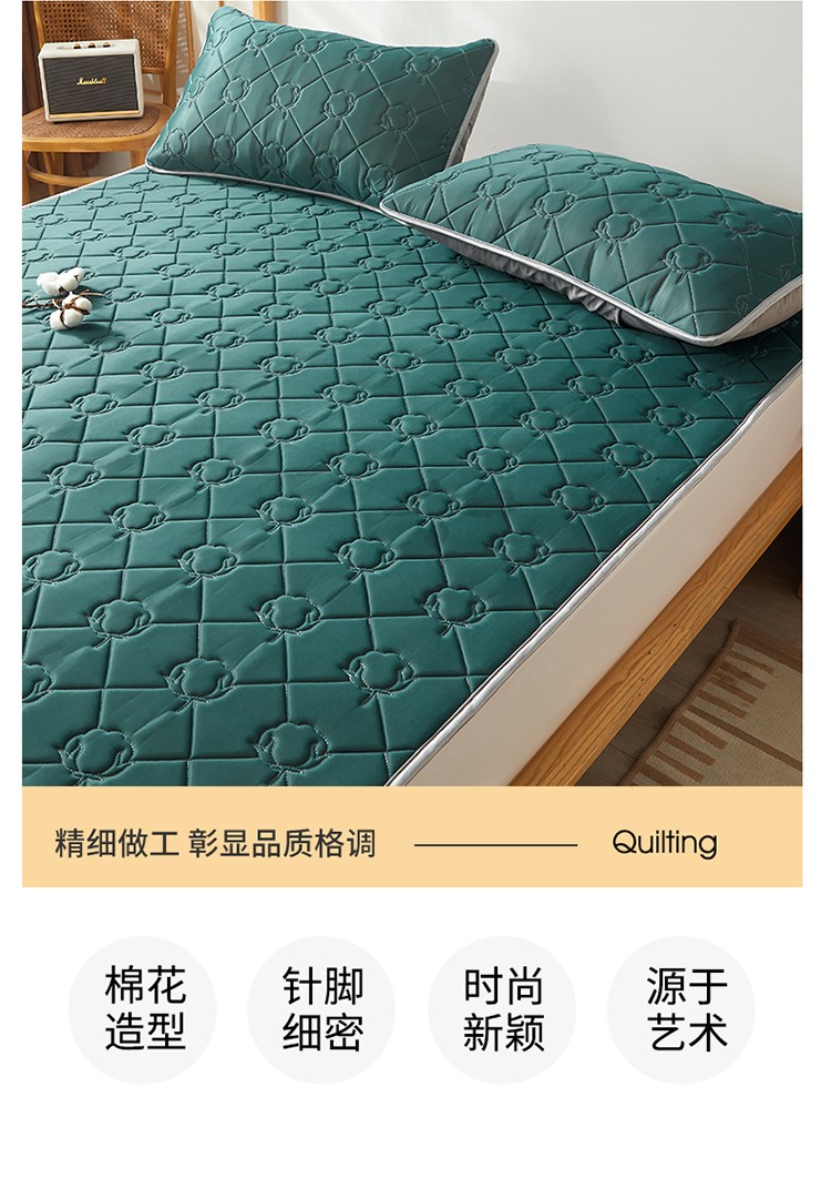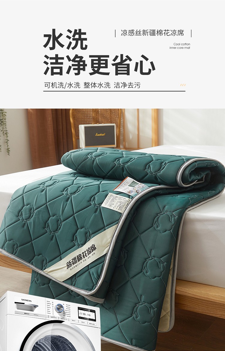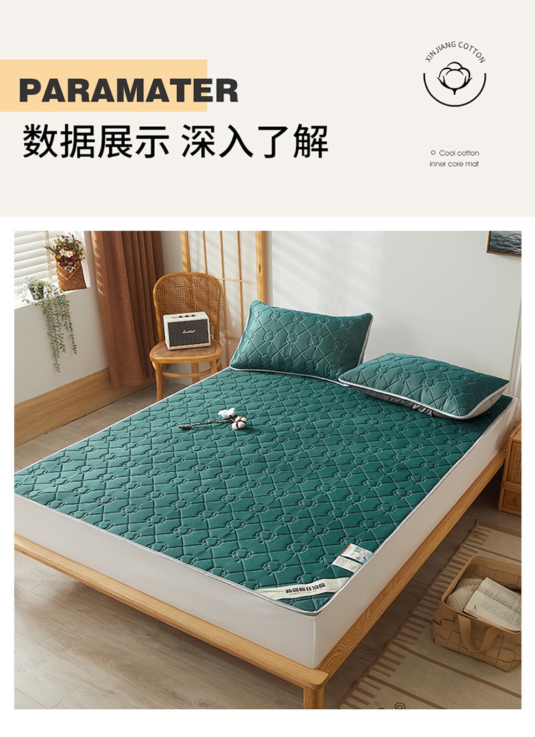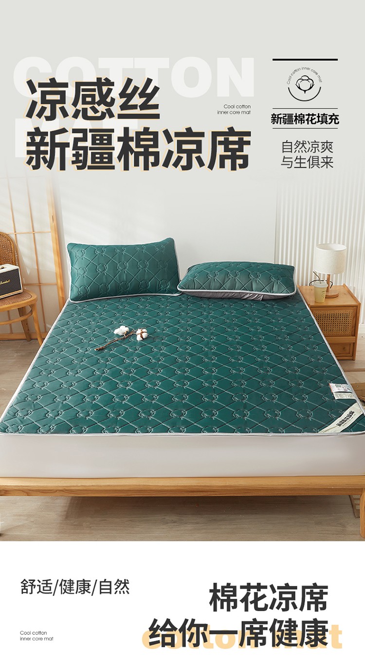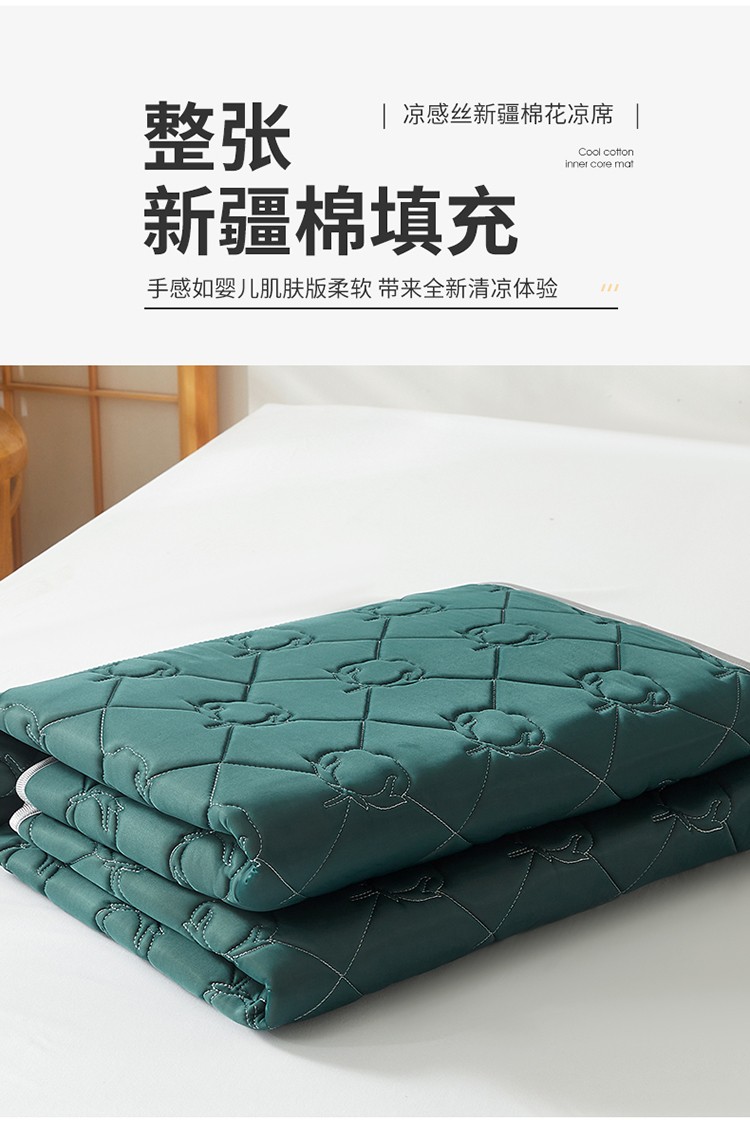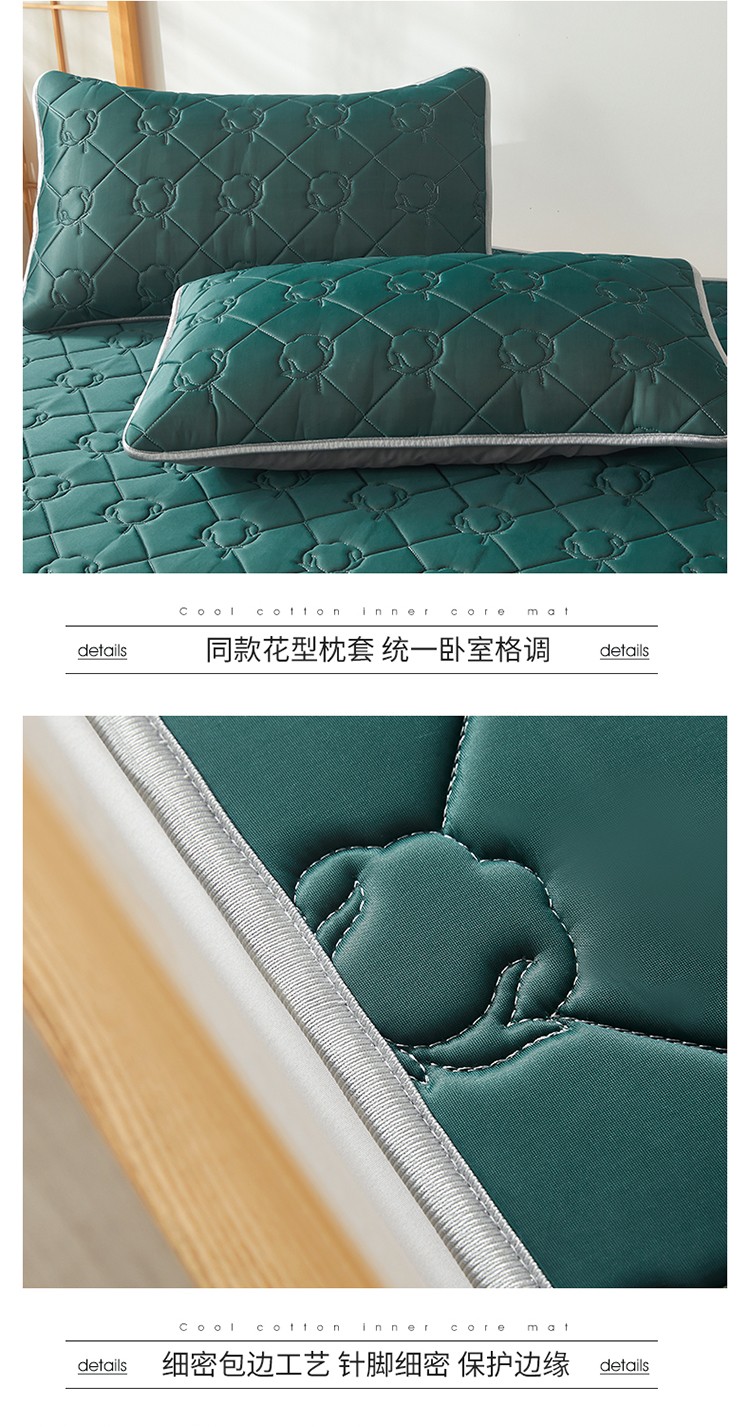 商品名称:西域种棉人 新疆棉花凉席冰丝凉感丝平铺款加厚床单款三件套纯色 马尔斯绿