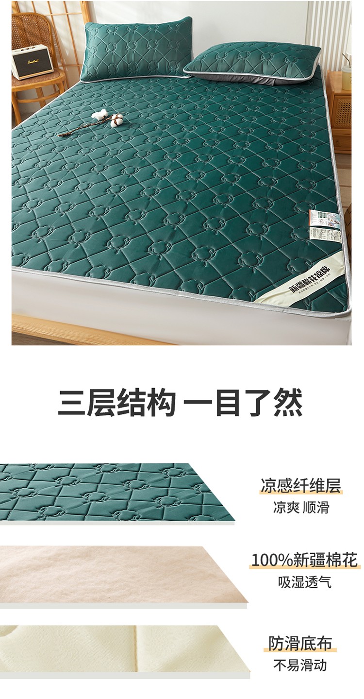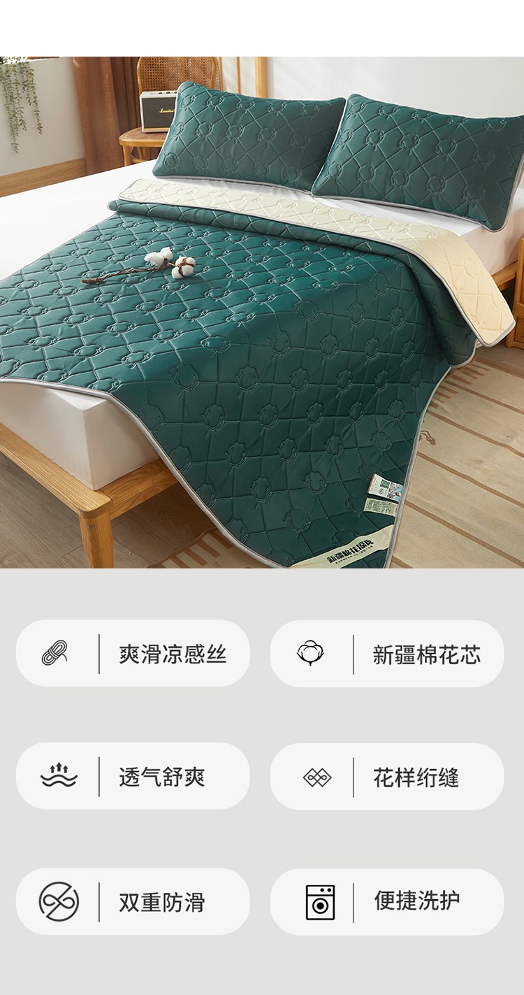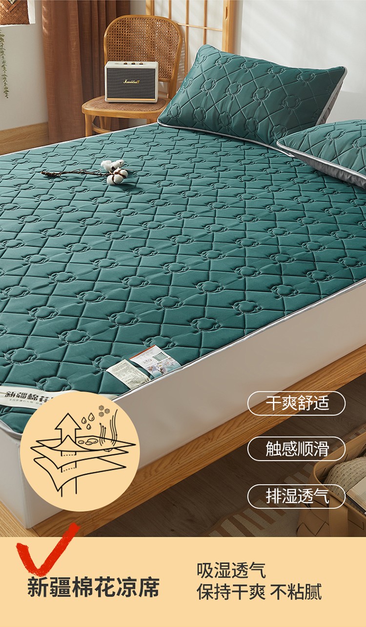 西域种棉人 新疆棉花凉席冰丝凉感丝平铺款加厚床单款三件套纯色 马尔斯绿