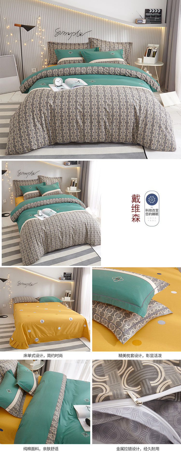 商品名称:沐白家居2023大版全棉印花四件套 2戴维森