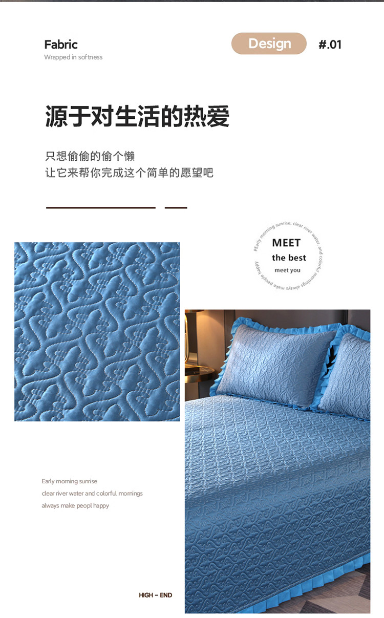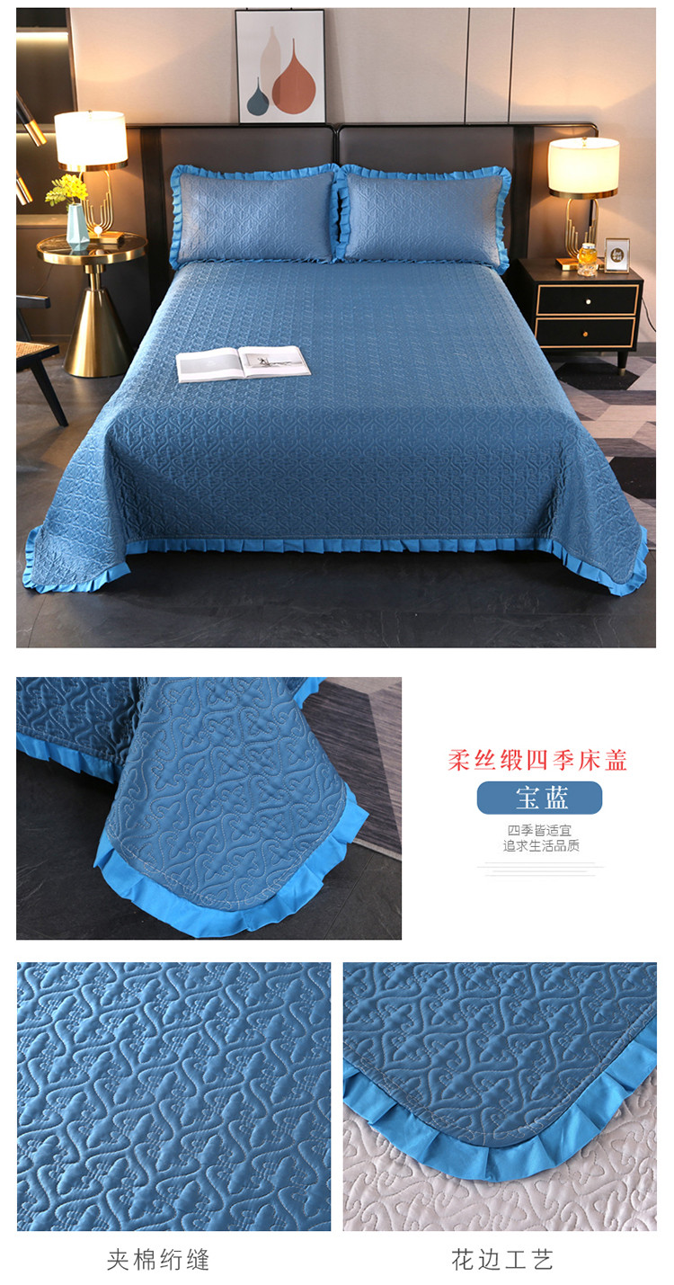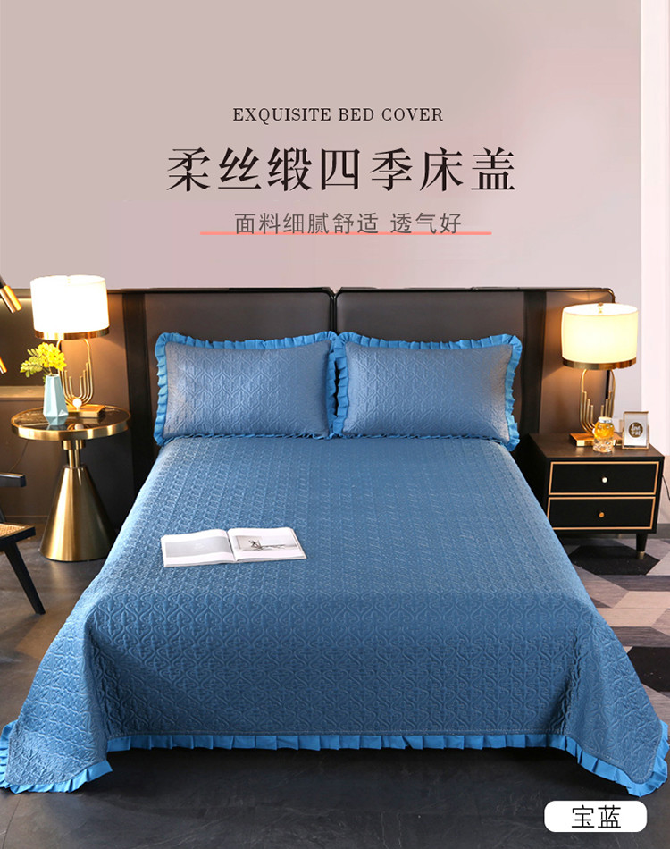 佳梦家纺 2023新款柔丝缎四季床盖 宝蓝