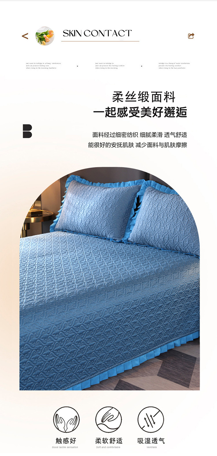商品名称:佳梦家纺 2023新款柔丝缎四季床盖 宝蓝