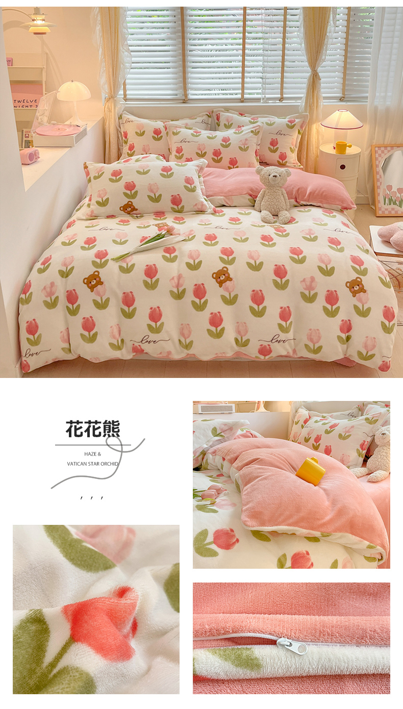 (总)佰亿莱 2025直播新款印花小清新法莱绒牛奶绒四件套