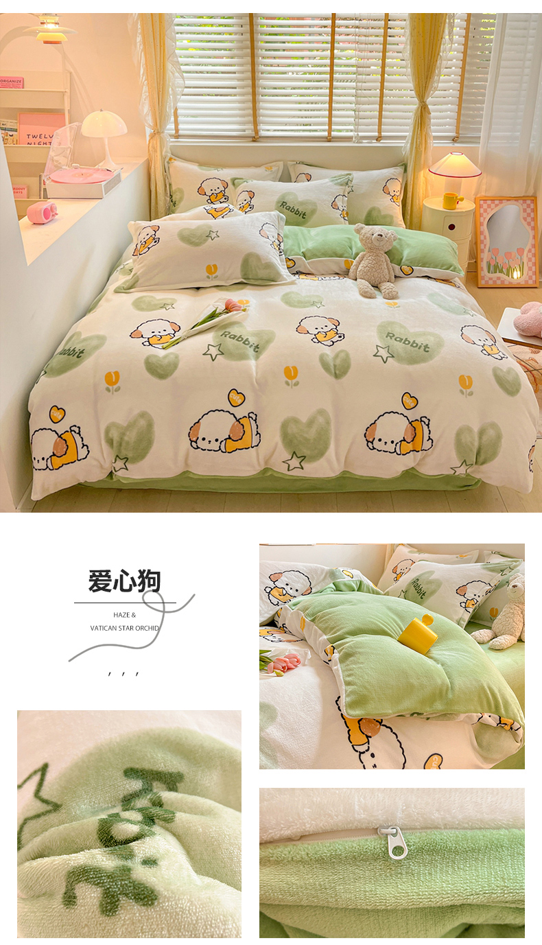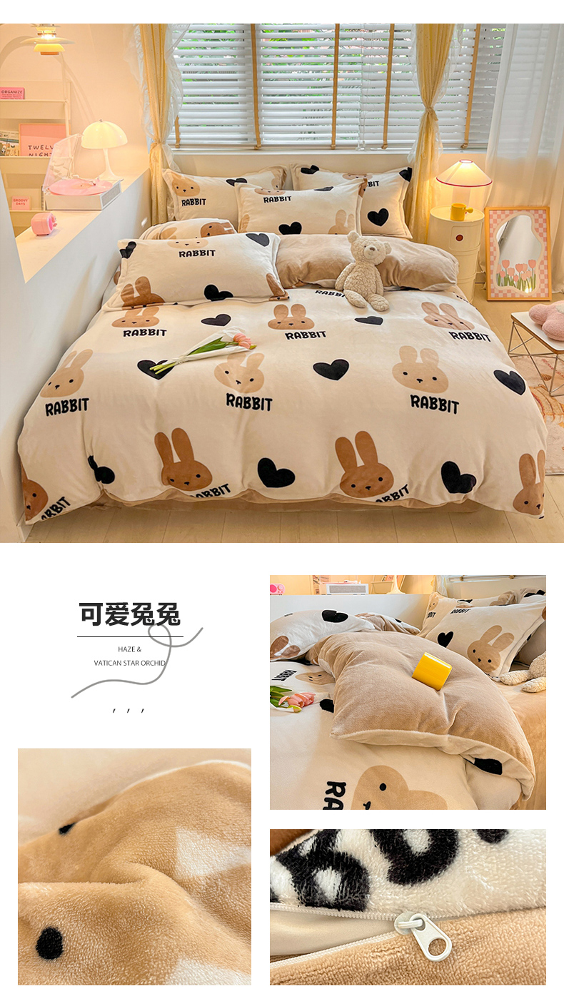 (总)佰亿莱 2024直播新款小清新印花全棉加厚磨毛四件套,爱心格,波浪兔,花萌,花园兔,咖啡熊,萌萌狗,时尚花季,时尚恐龙,田园花,郁金香