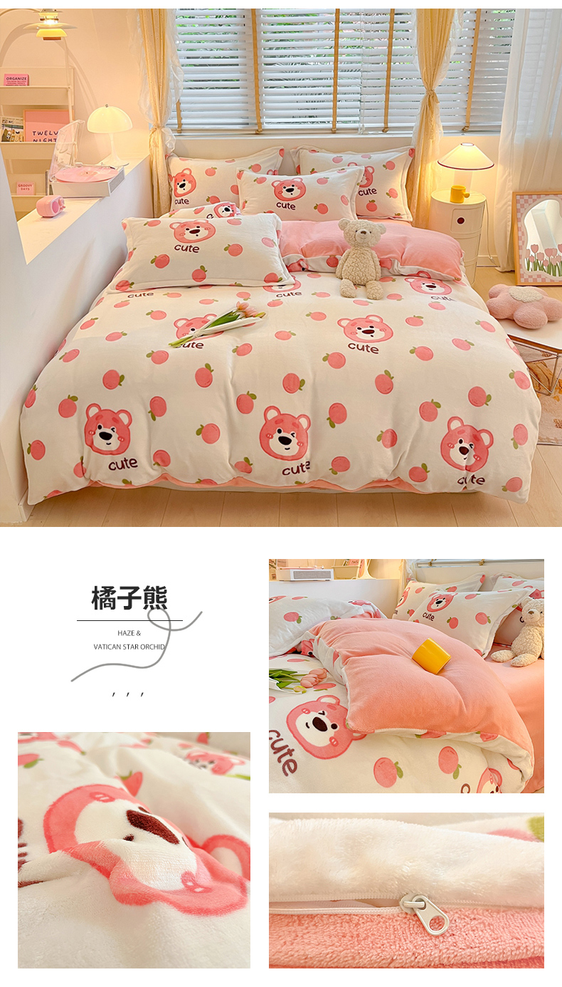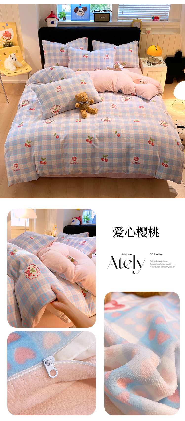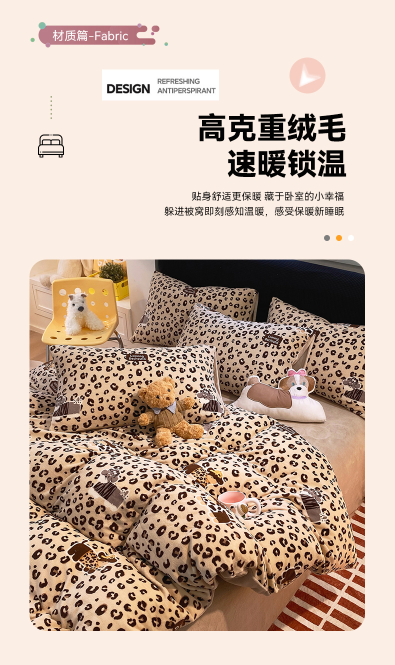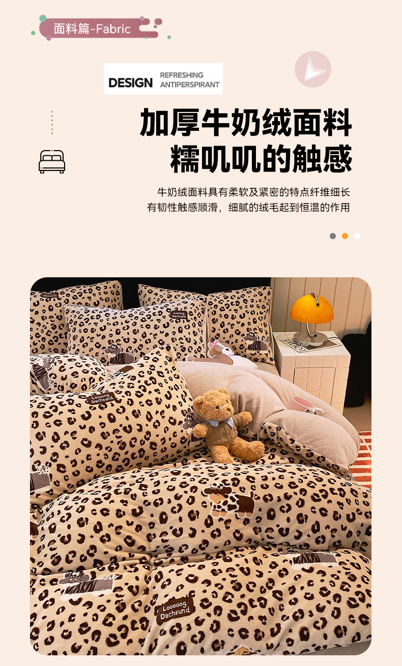 (总)佰亿莱 2025新款牛奶绒豆豆绒印花床盖四件套,百富蓝,豹纹狗狗,瑾紫花,可可蓝,猫咪酱,奶油波波,手捧玫瑰,条纹蝴蝶结,旺仔乐园