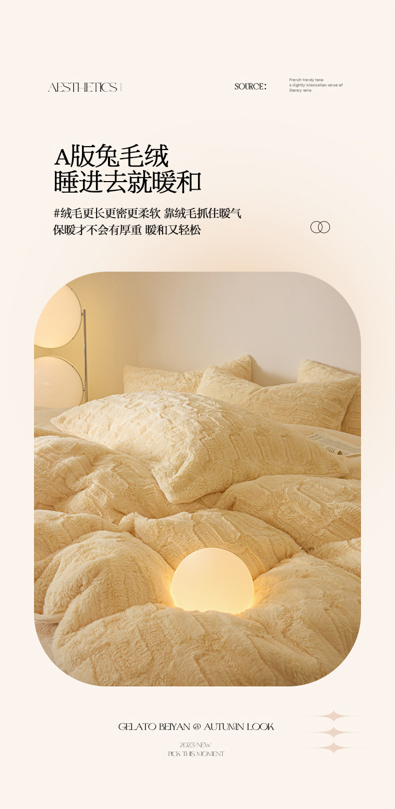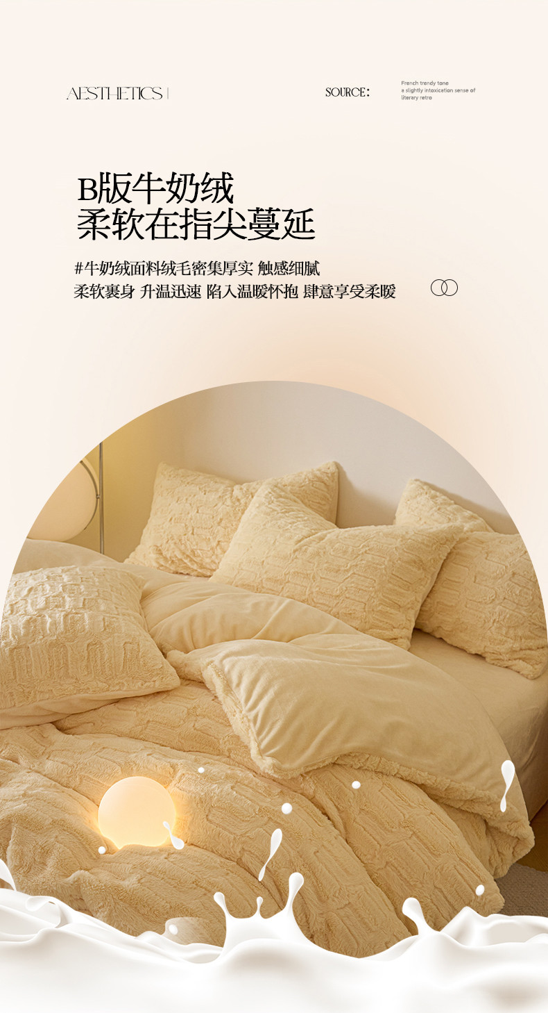 商品名称:沐棉 2023新款秋冬加厚保暖兔毛绒牛奶绒四件套 波浪-黄