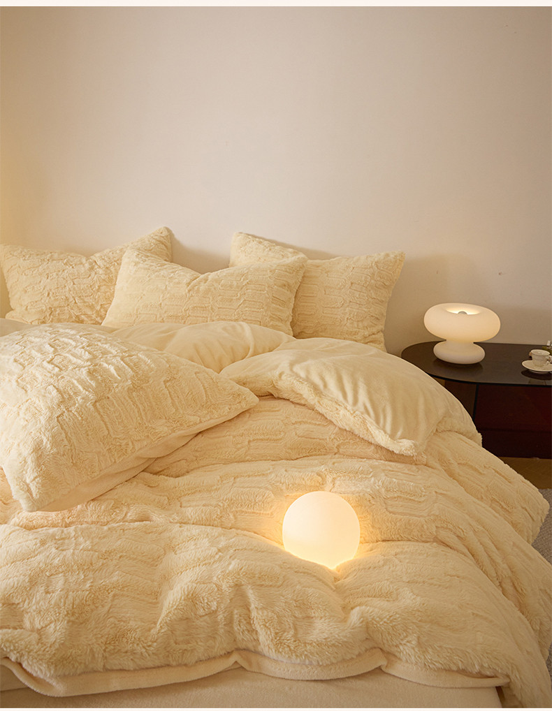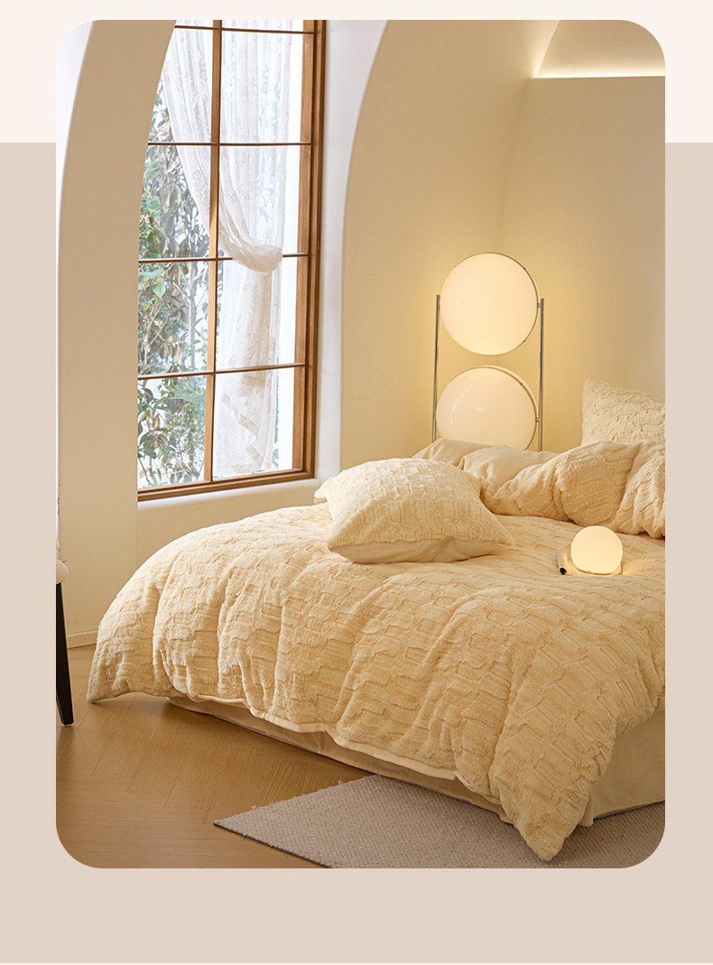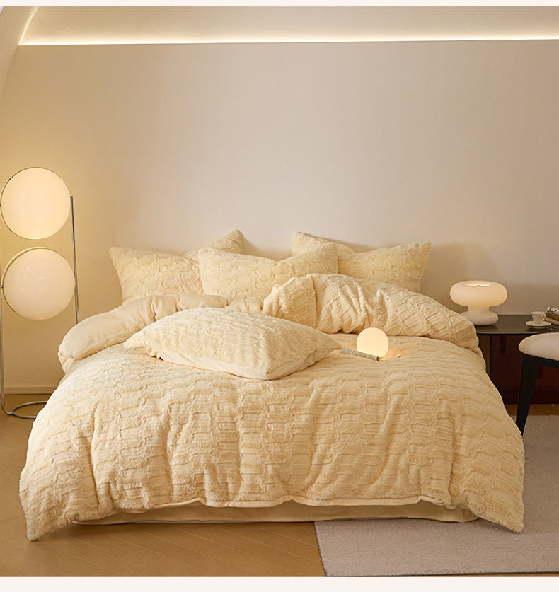 沐棉 2023新款秋冬加厚保暖兔毛绒牛奶绒四件套 波浪-黄