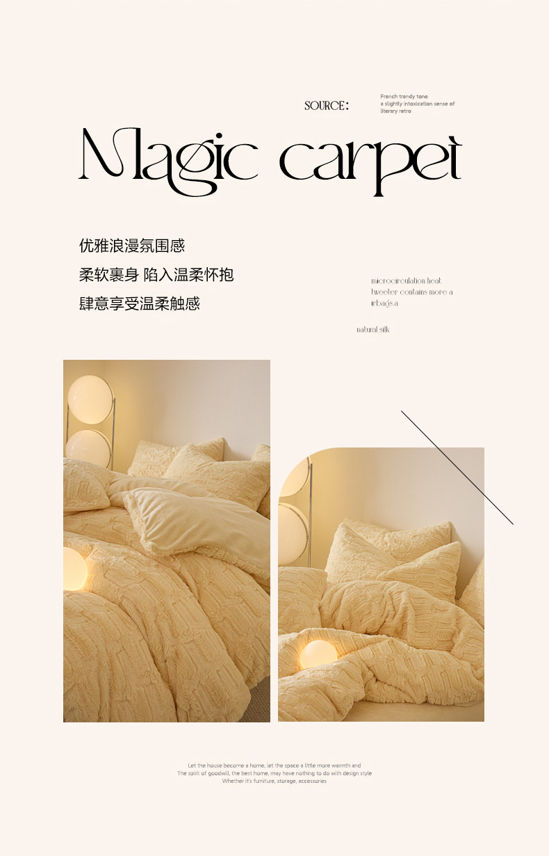 (总)沐棉家居 2025新款高克重立体雕花牛奶绒保暖四件套,曼苏雅,光影蝴蝶,花舞倩影,热带雨林,雅致