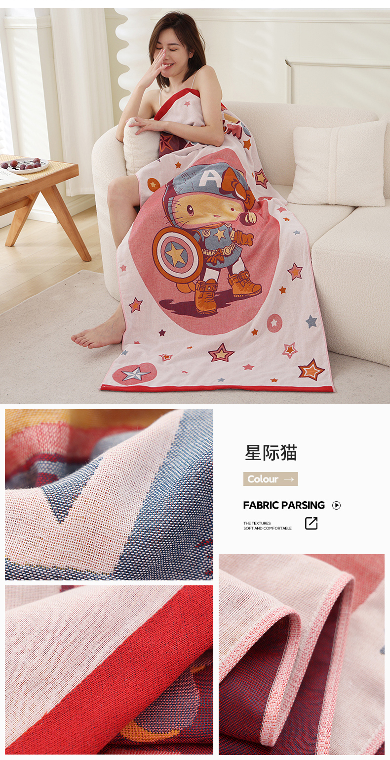 当前位置: 91家纺网 > 商品网购 > 居家日用 > 毛巾/浴巾/浴袍 > 浴巾 > 朴尔家纺-毛巾被 2023新款加大浴巾纯棉四层纱布家用男女柔软不掉毛通用成人全棉洗澡大裹巾儿童卡通 80*160cm星际猫