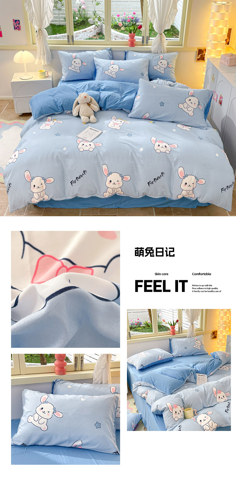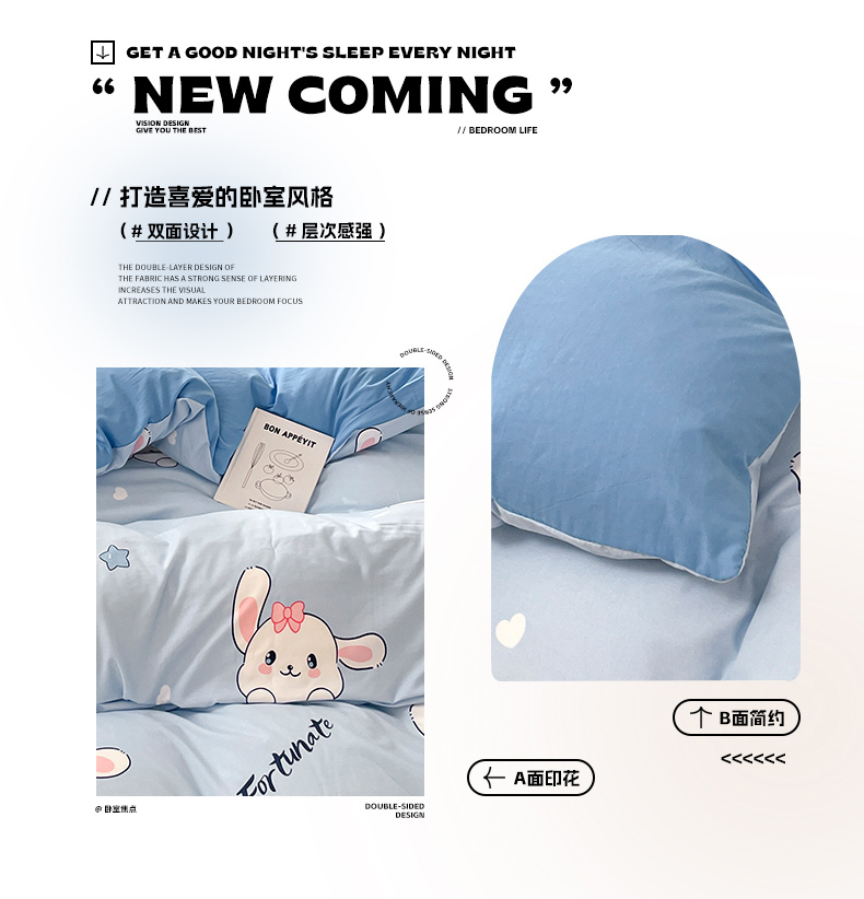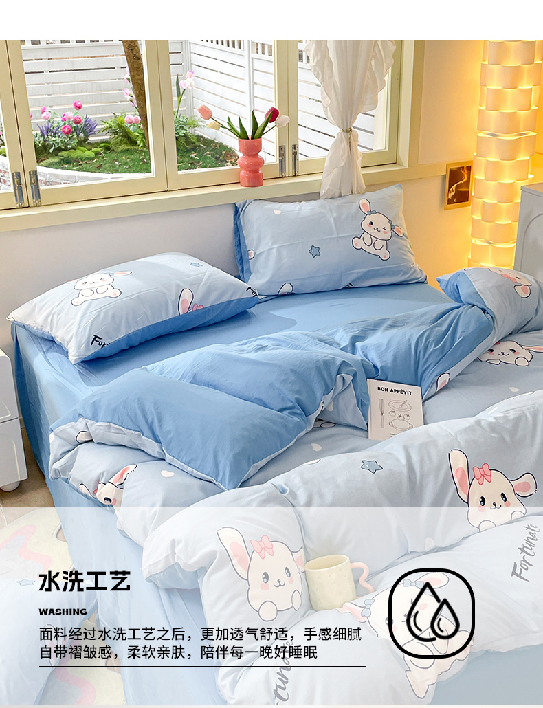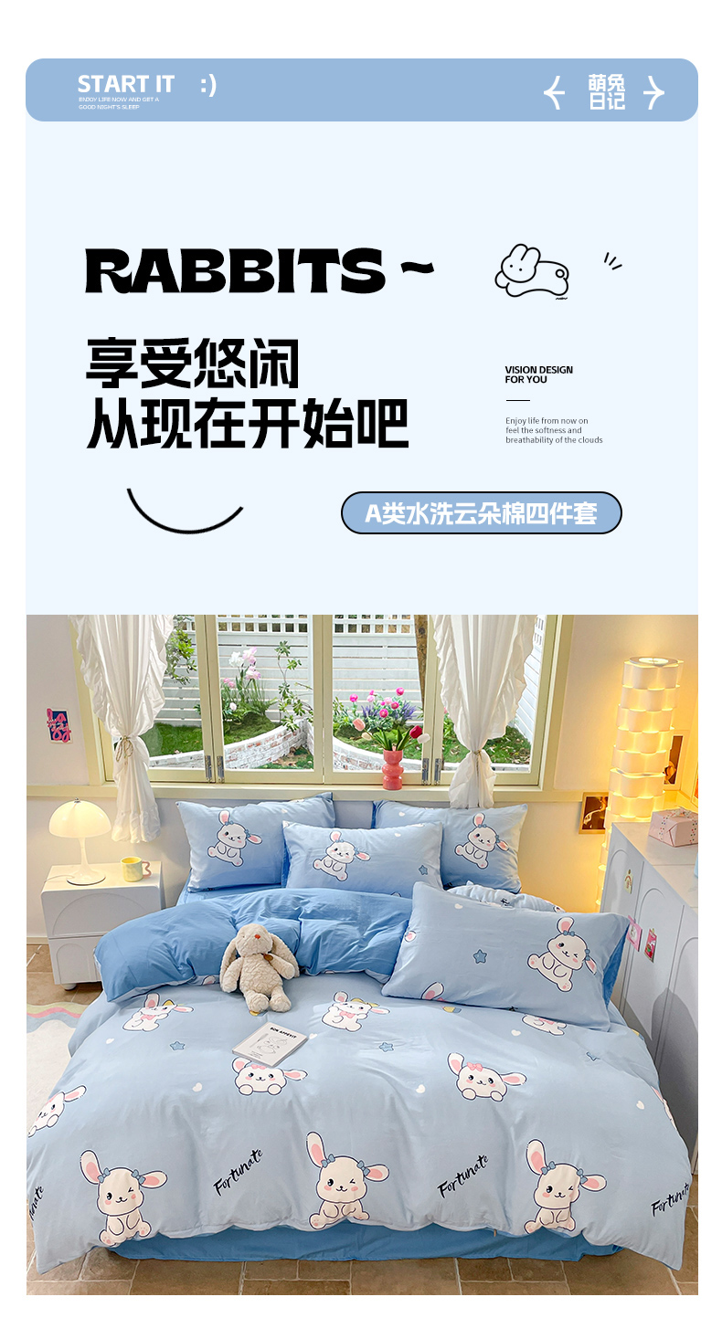 当前位置: 91家纺网 > 商品网购 > 床品套件 > 四件套 > 水洗棉四件套 > 卡斯诺家纺馆 2025新款A类水洗云朵棉四件套 (下载包包含买家秀)萌兔日记