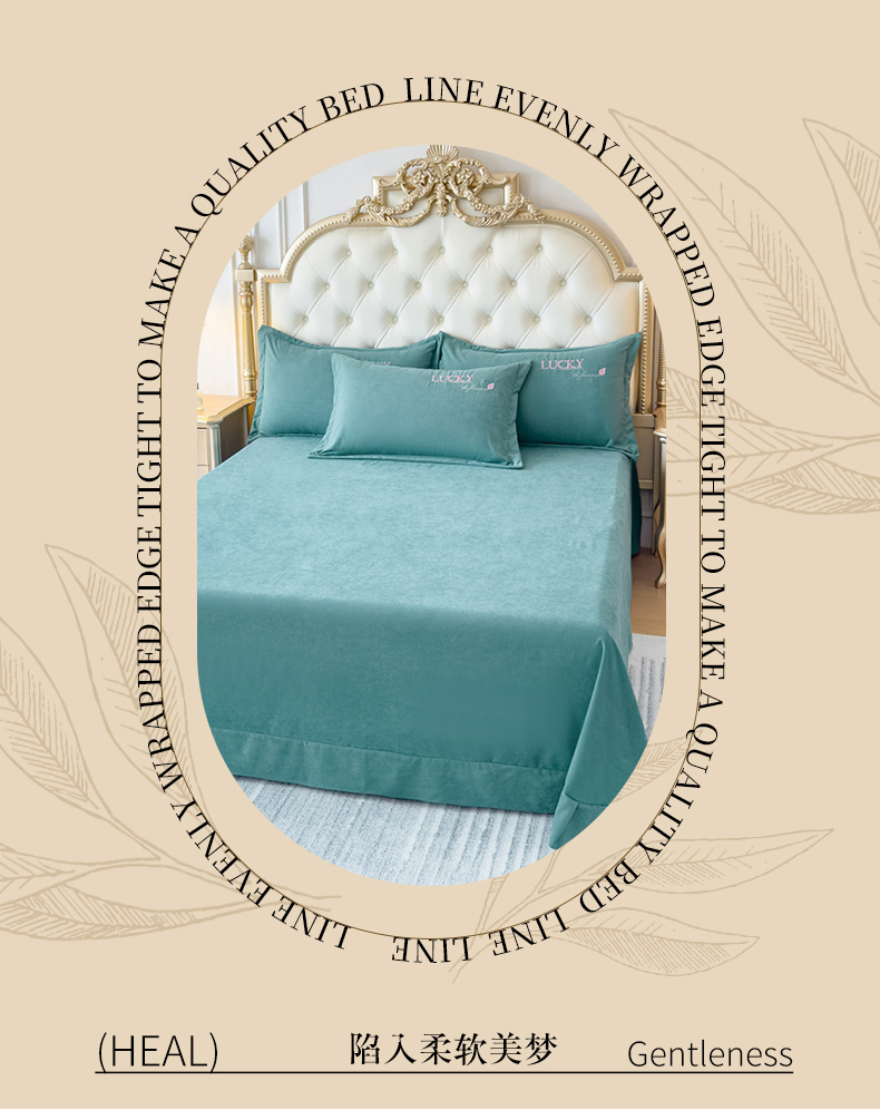 逸林家纺《原希尔顿逸林》 2024新款斜纹磨毛四件套水洗斜纹棉蛋白棉绣花四件套 爱丽丝系列 爱丽丝-松石绿