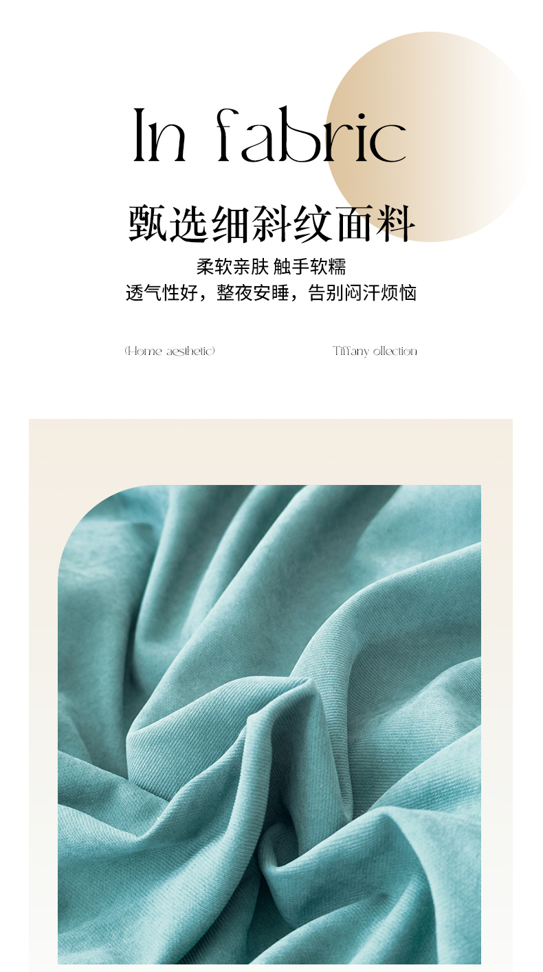 商品名称:逸林家纺《原希尔顿逸林》 2024新款斜纹磨毛四件套水洗斜纹棉蛋白棉绣花四件套 爱丽丝系列 爱丽丝-松石绿
