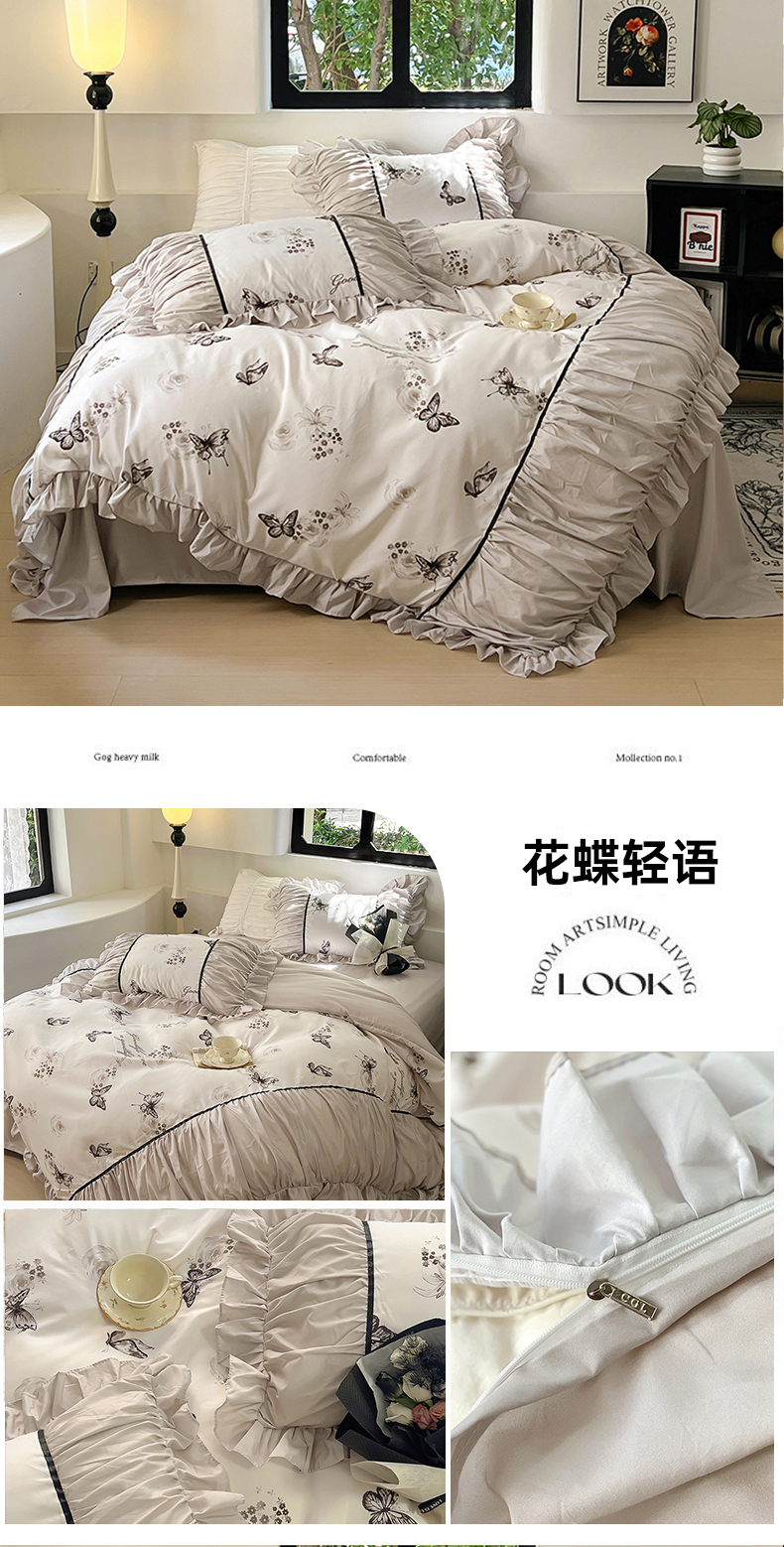 商品名称:春光里 2024新款法式大花边亲肤磨毛四件套 花蝶轻语