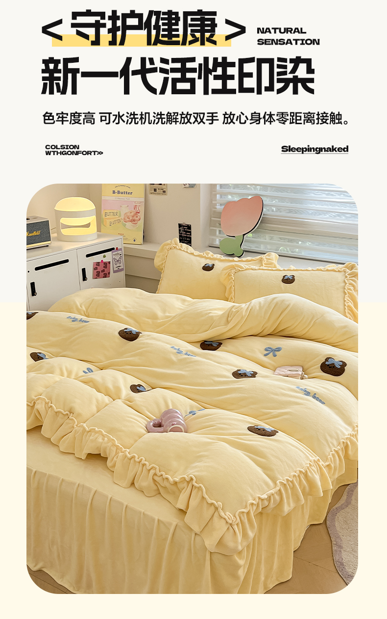 亨通家纺 2024新款高克重法式牛奶绒四件套系列-呆萌风 呆萌风-粉玉