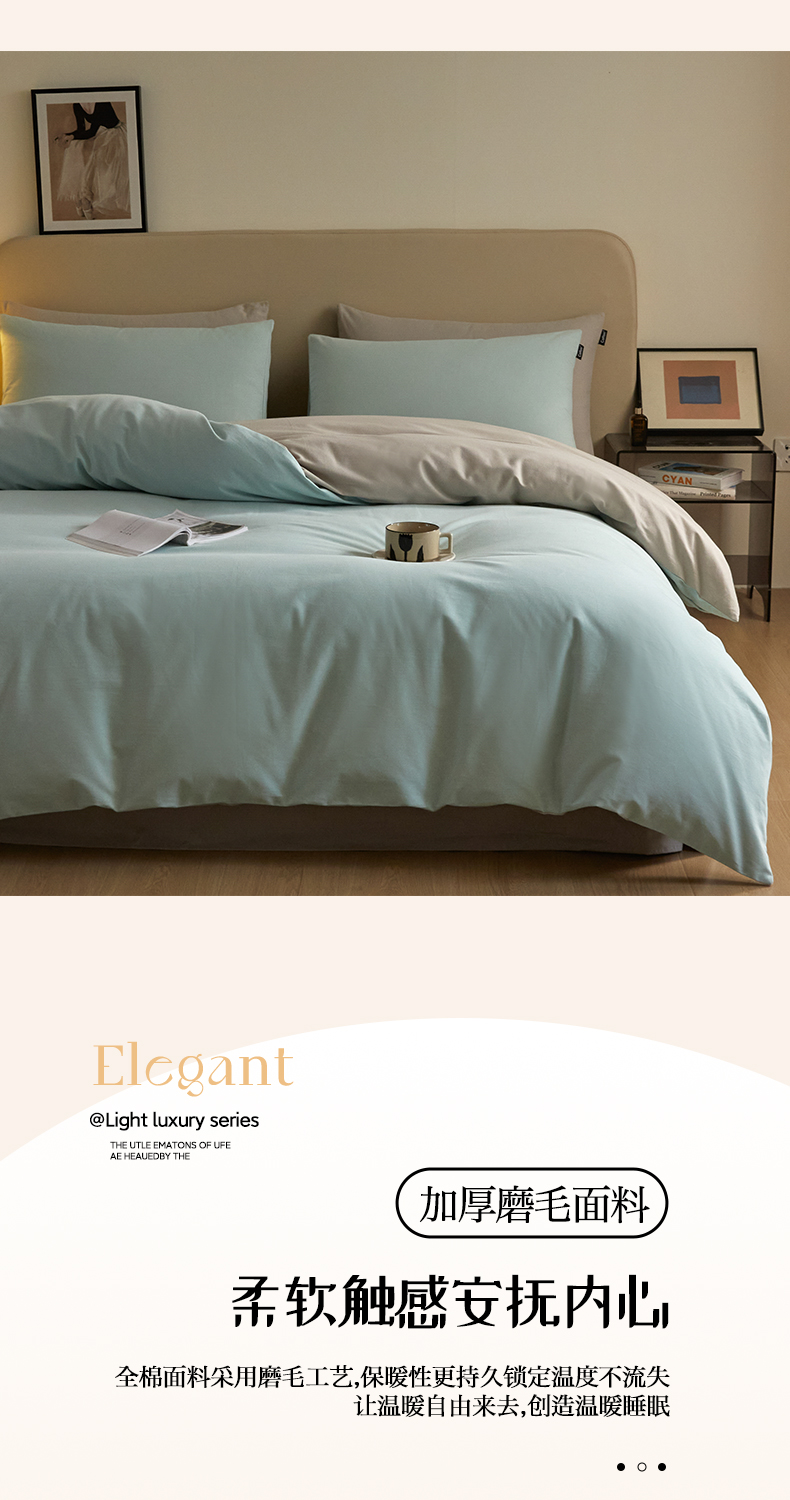 当前位置: 91家纺网 > 商品网购 > 床品套件 > 四件套 > 全棉普通四件套 > 涵宸家纺 2024新款全棉磨毛四件套纯厚系列(轻)-四件套 纯厚(爱琴海+漫灰)