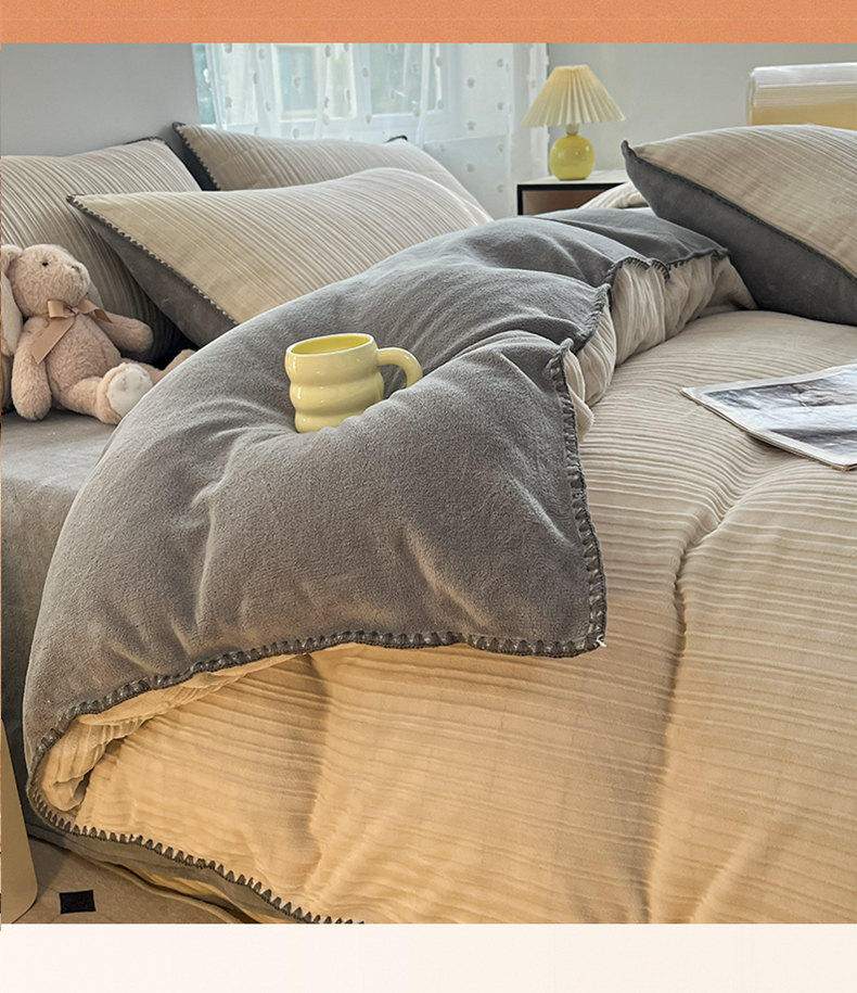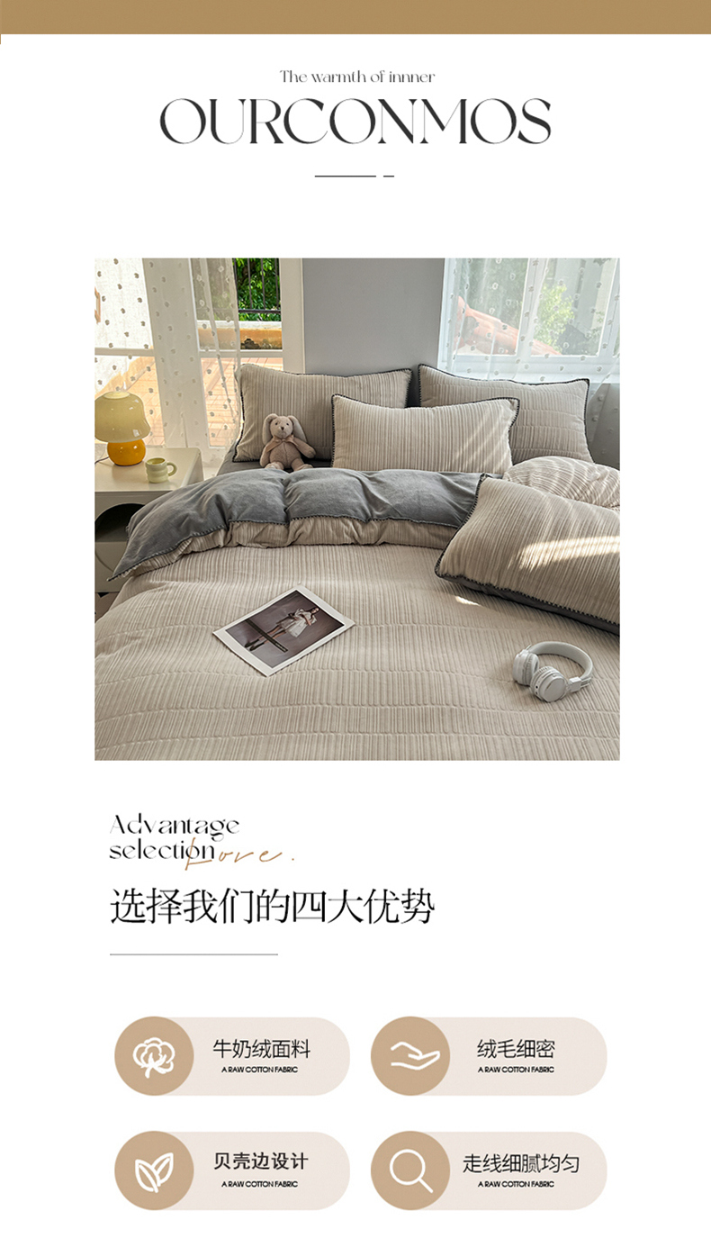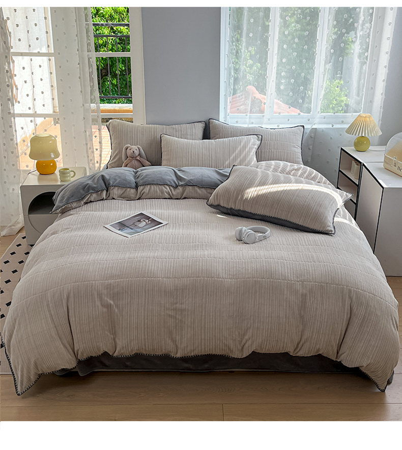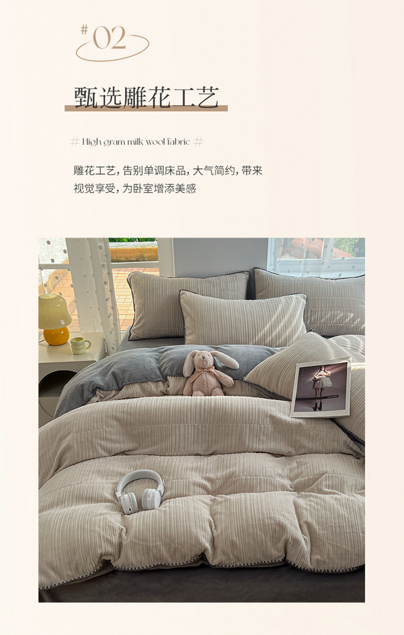 当前位置: 91家纺网 > 商品网购 > 床品套件 > 四件套 > 牛奶绒四件套 > 晚依家纺 2024新款230g纯色立体雕花牛奶绒四件套贝壳边加厚保暖定制定做 香榭格调-珍珠灰