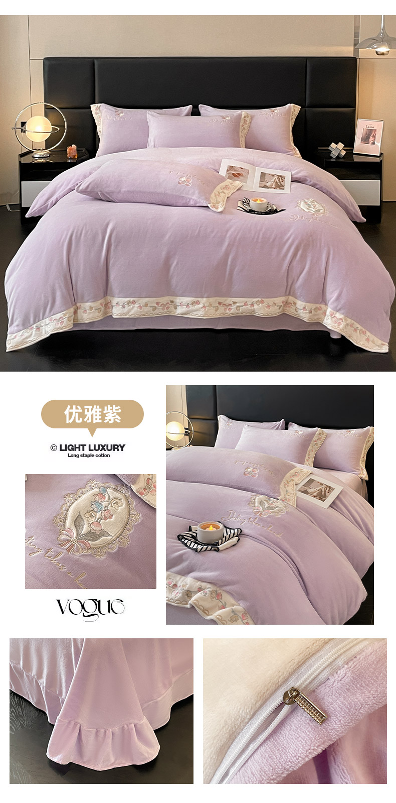 商品名称:可以家居 2024新款超细旦全消光有机云绒四件套-赫拉 赫拉-优雅紫