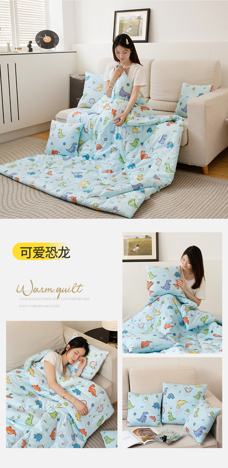商品名称:雷人家纺 2024新款A类全棉喷气13372印花多功能抱枕被 可爱恐龙