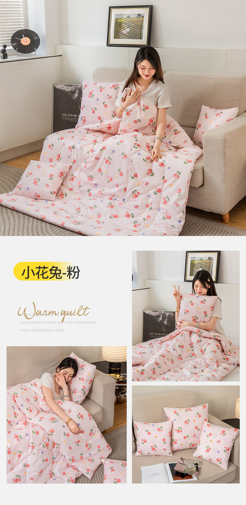 商品名称:雷人家纺 2024新款A类全棉喷气13372印花多功能抱枕被 小花兔-粉