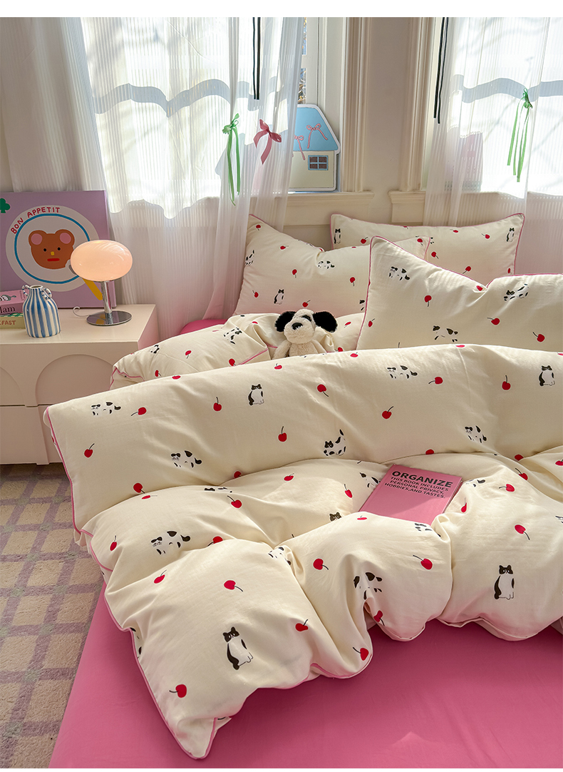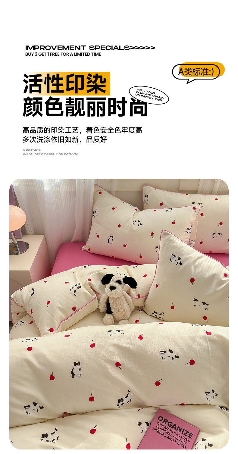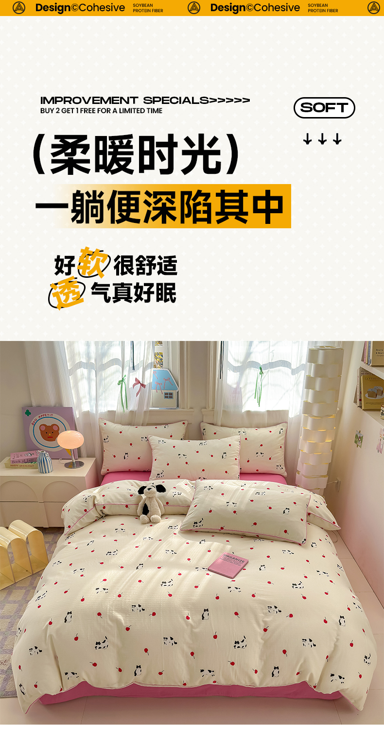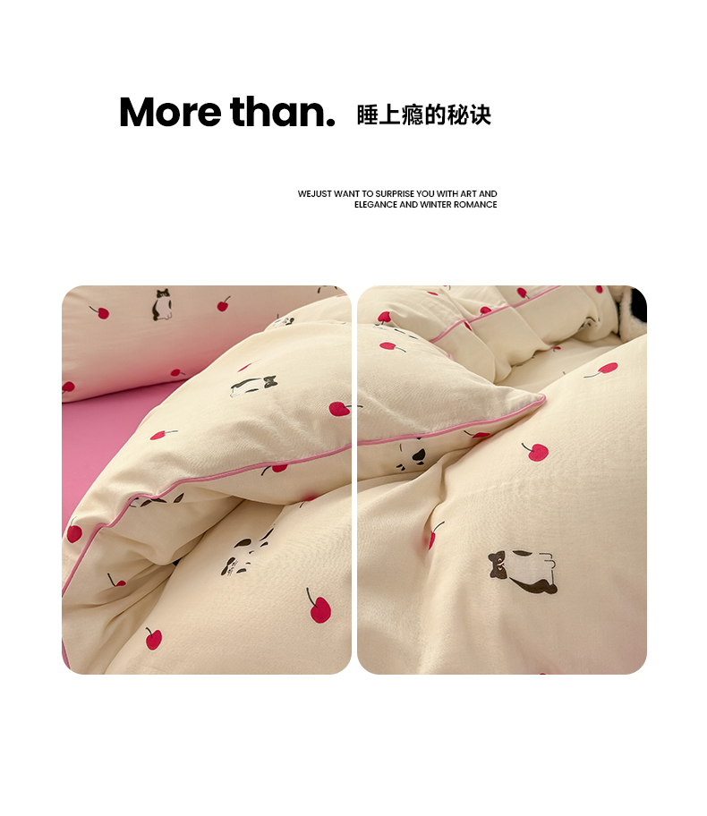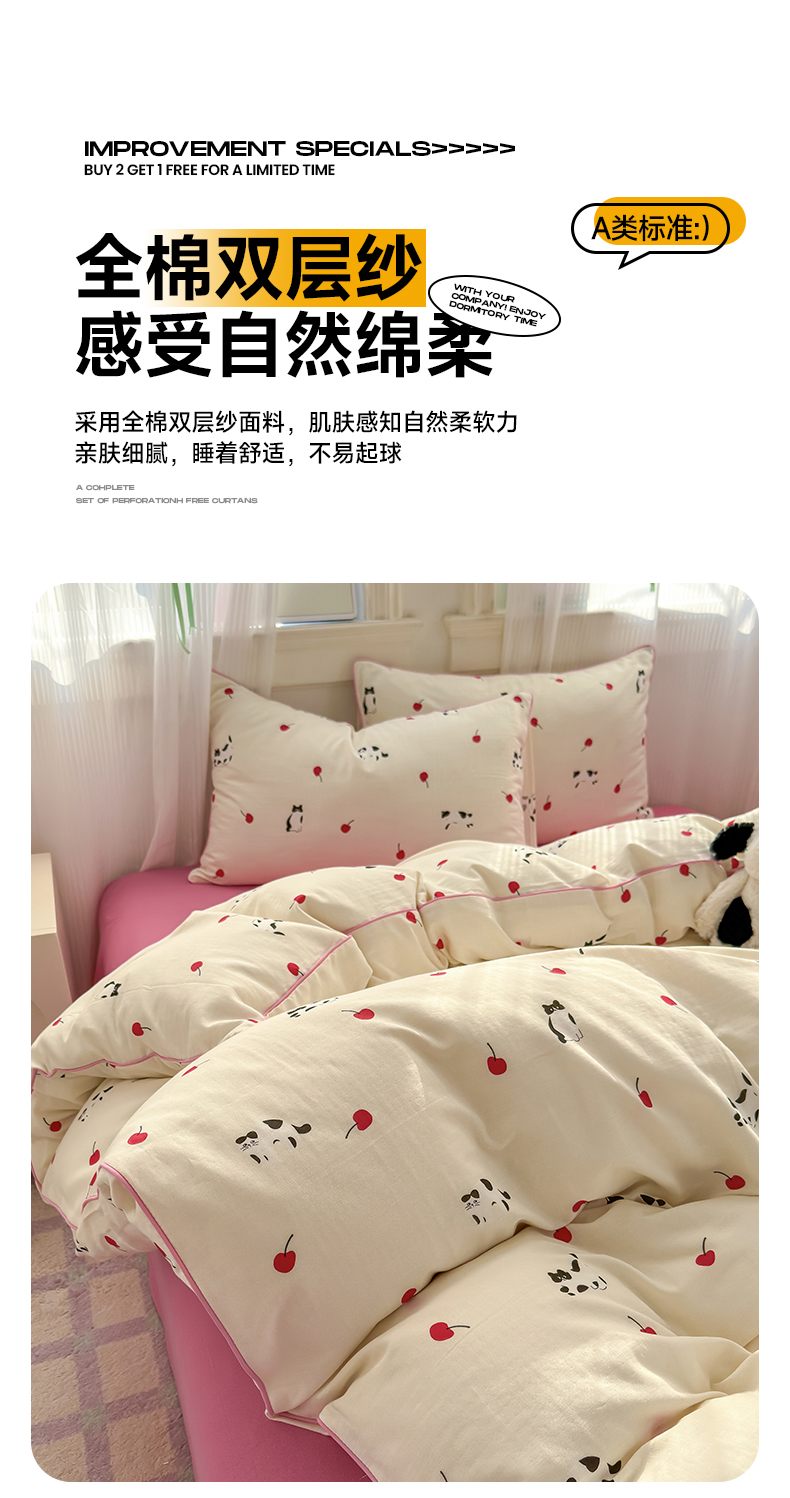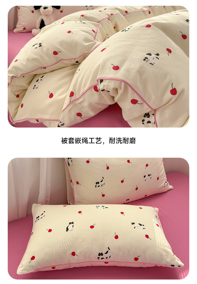 商品名称:沐棉家居 2025新款全棉双层纱四件套 喵喵酱