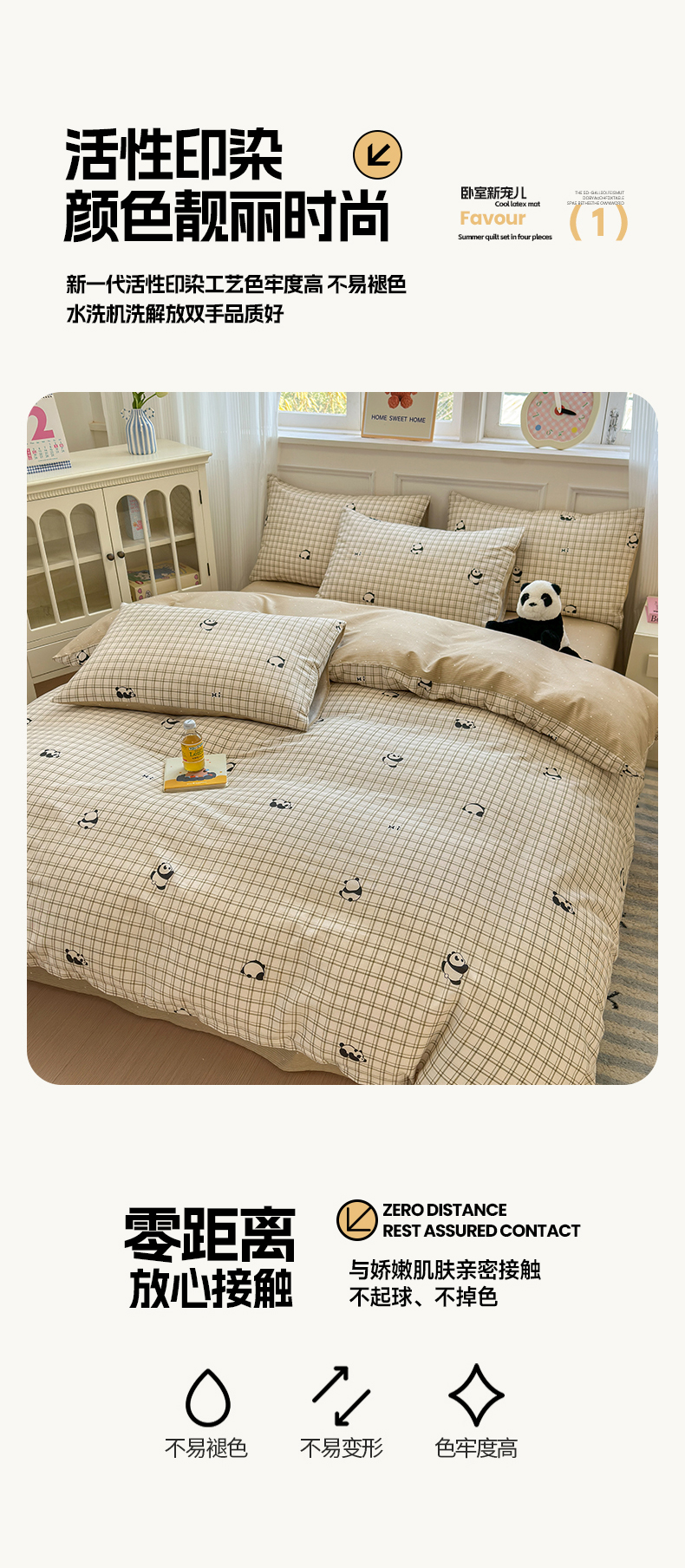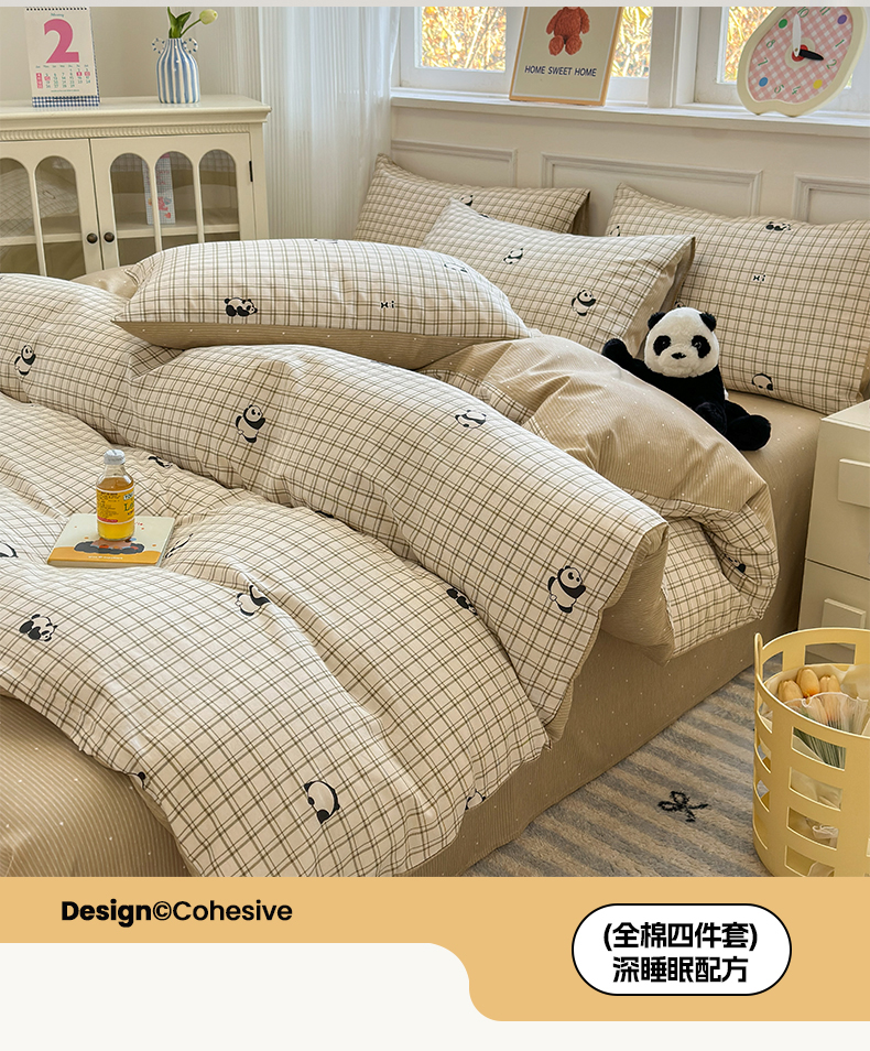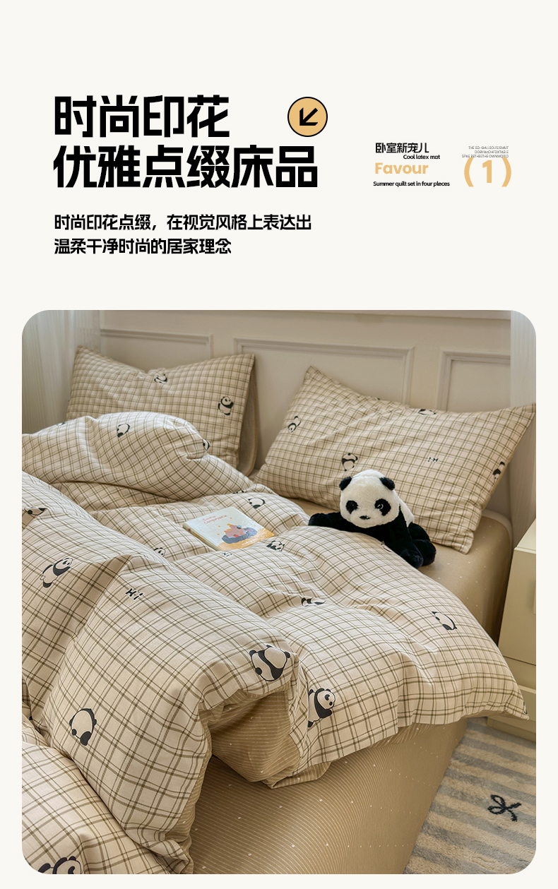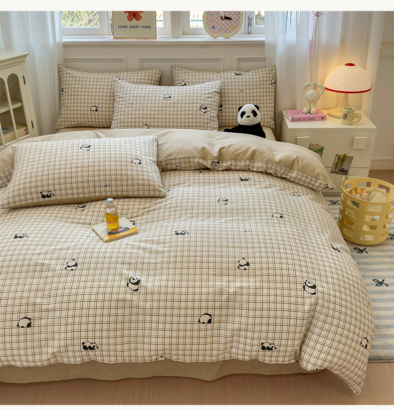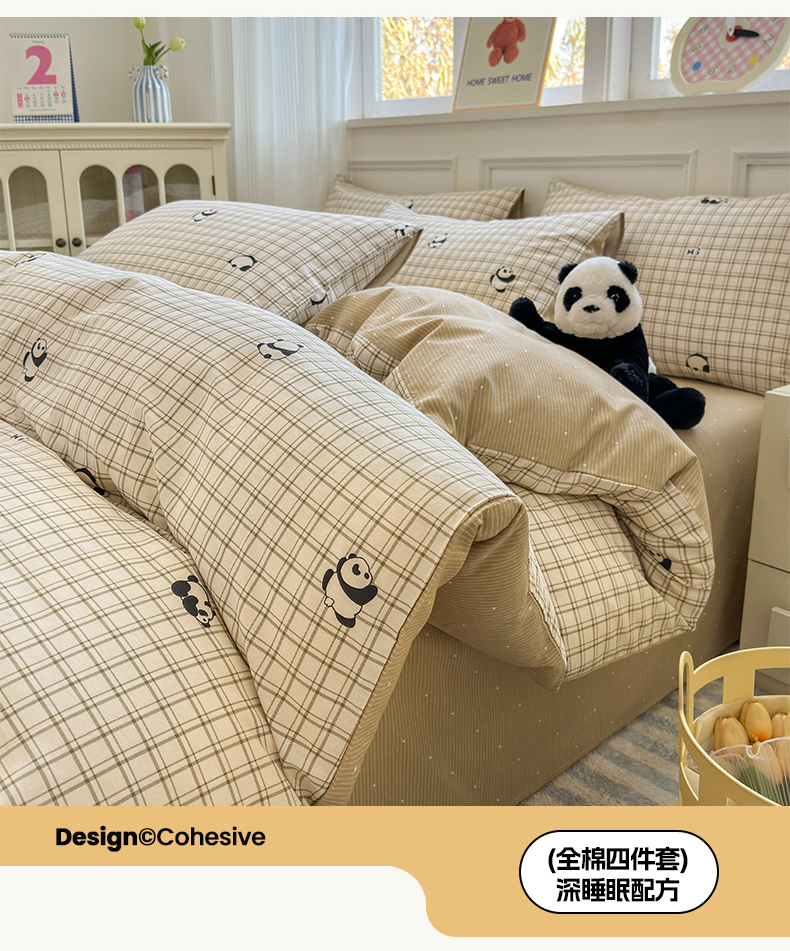 沐棉家居 2025新款全棉印花四件套 可爱熊猫