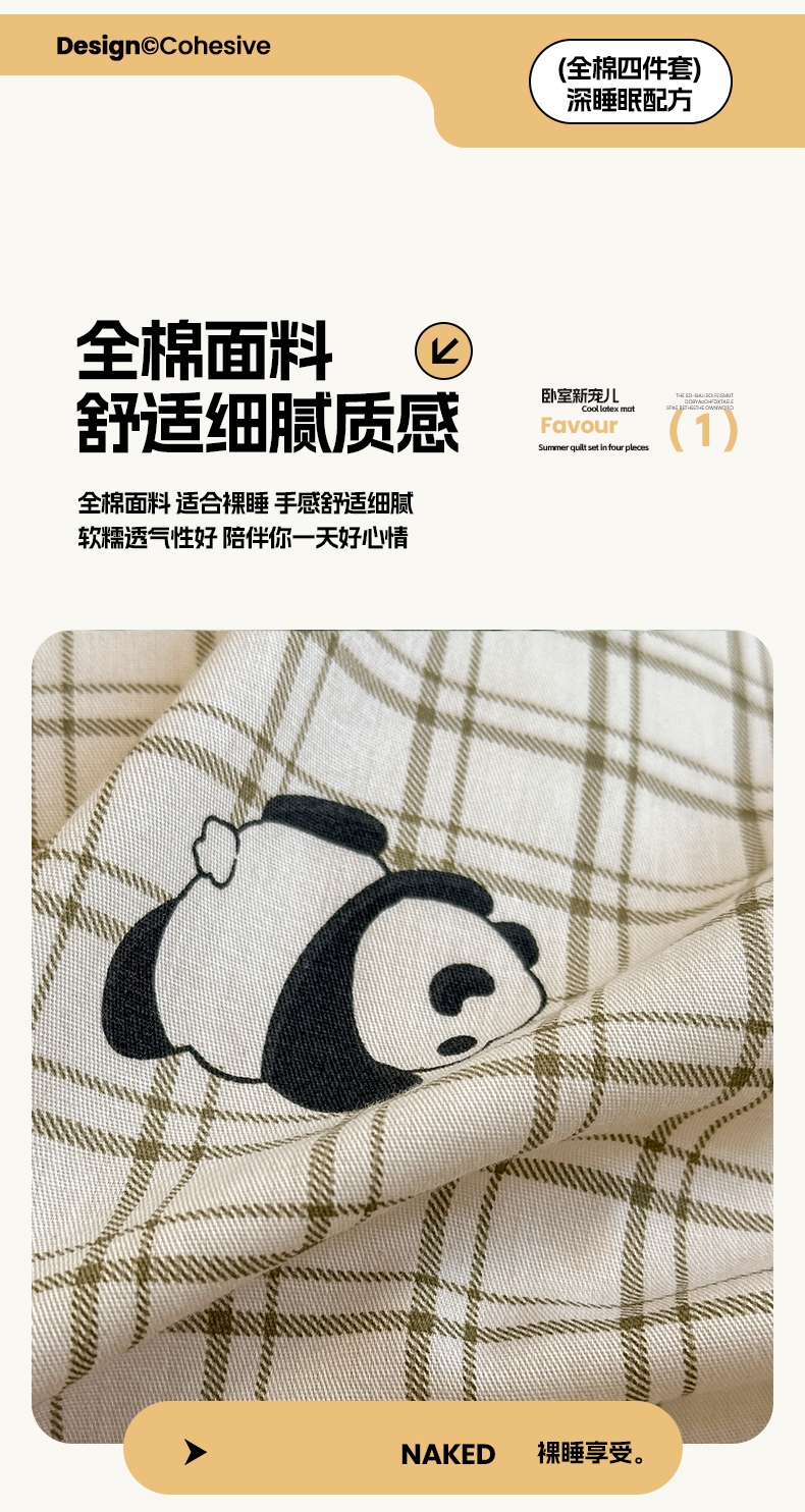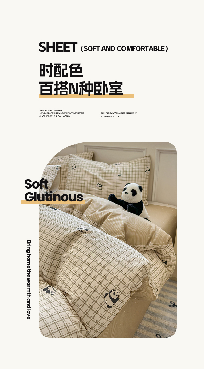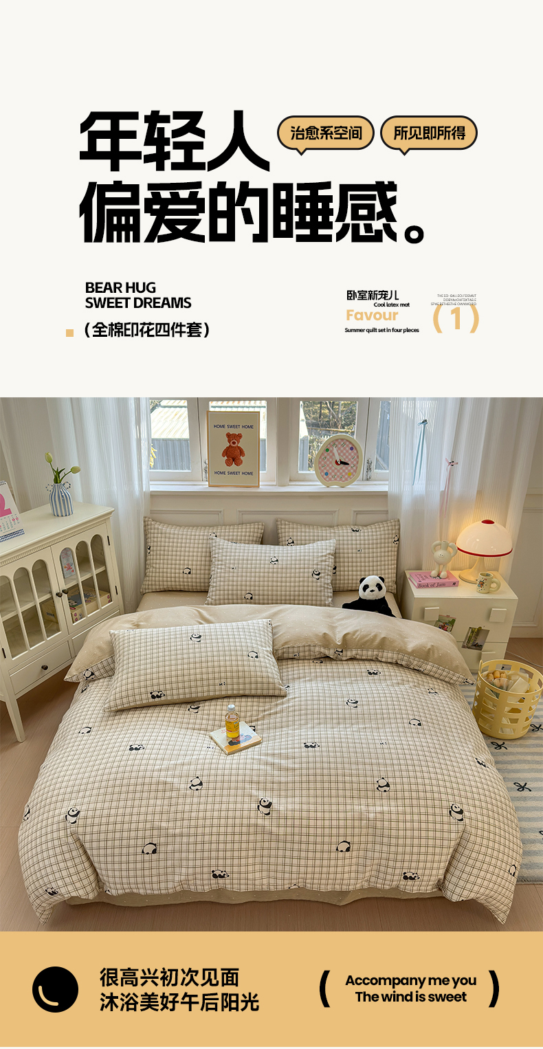 沐棉家居 2025新款全棉印花四件套 可爱熊猫