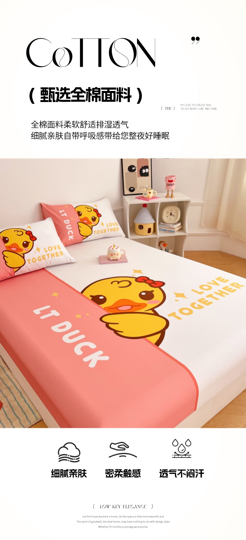 圣比熊 正版授权控价55元起 全棉床笠卡通床笠罩全包席梦思床垫保护罩 羞涩鸭