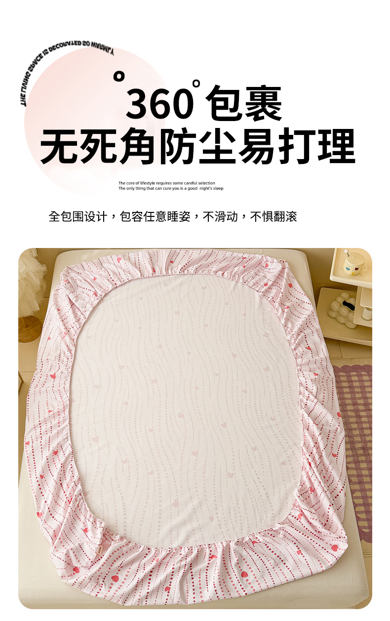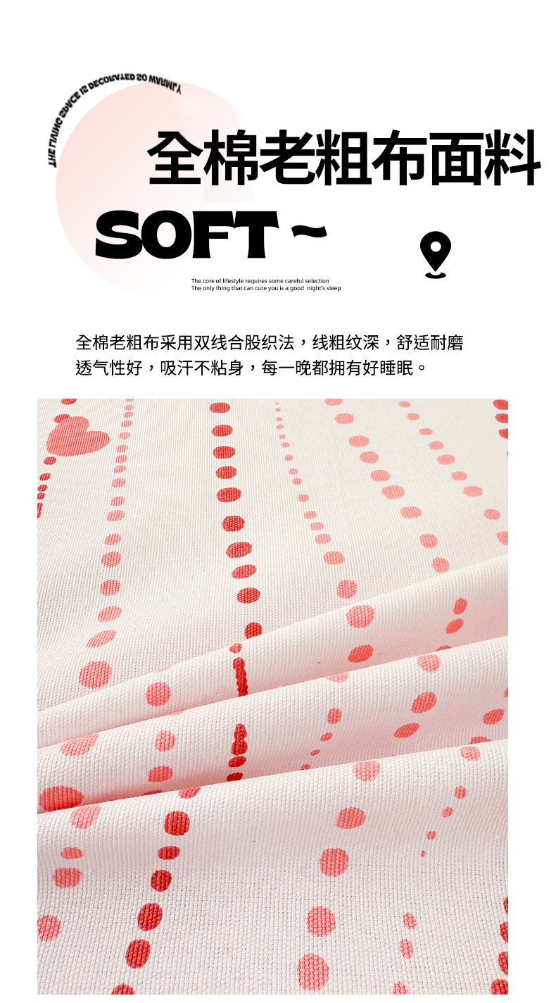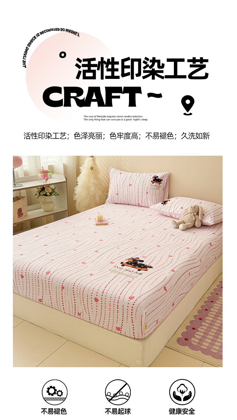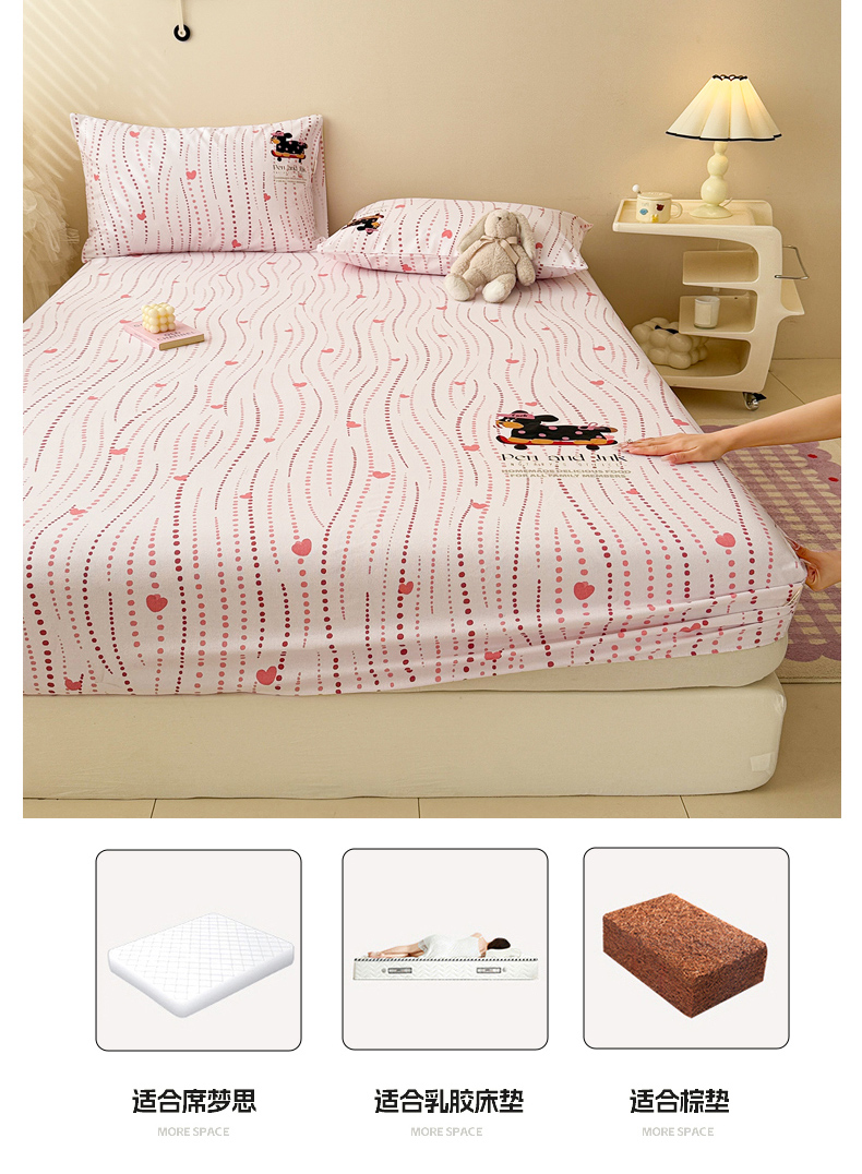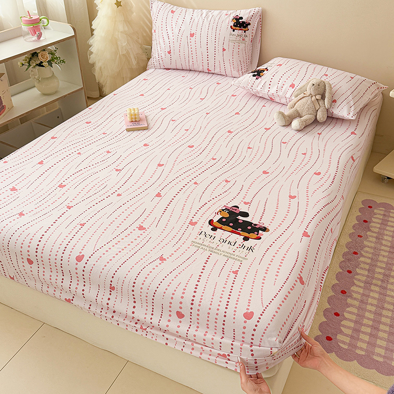 • 91家纺网 家纺一手货源 找家纺 沐辰 2025春夏新款A类全棉纯棉老粗布烫画单品床笠 床笠单件 点点狗狗-粉
