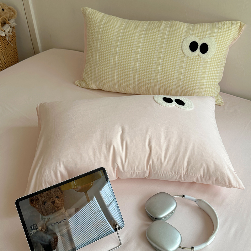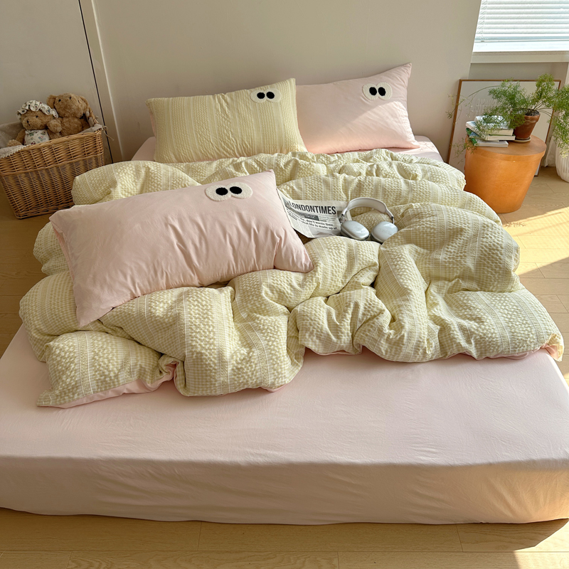 顾里家纺 2025新款大眼混搭色织水洗棉毛巾绣套件 黄粉格