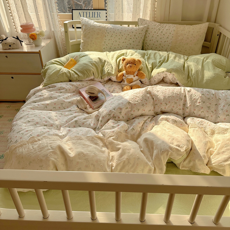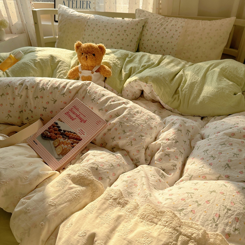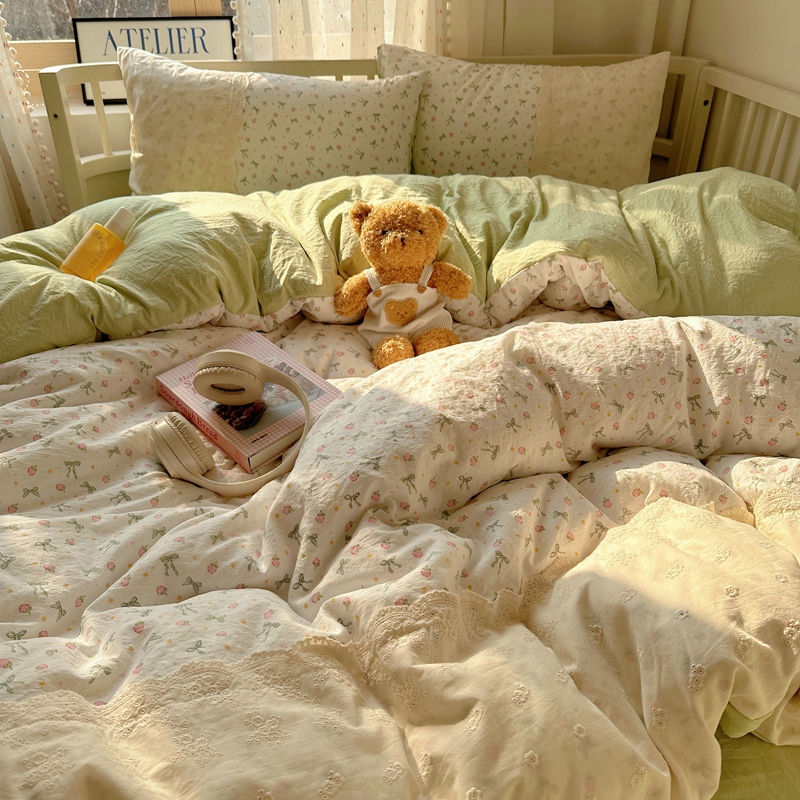(总)顾里家纺 2026新款春日碎花大花边云感棉四件套(床笠属于定制 后期不予退换),豹纹樱桃,彩点小熊,丁香小熊,风铃西高地,复古风信,复古山茶,花海,蓝豹小猫,梦幻粉兔,玩偶粉兔,线条表情狗,星辰花,樱桃花,虞美人,治愈小狮