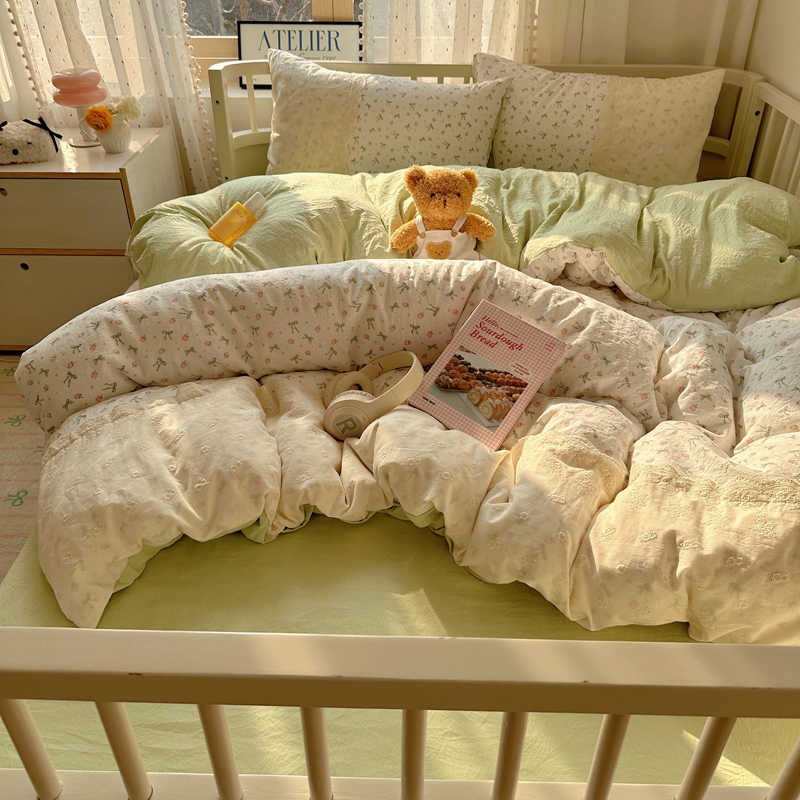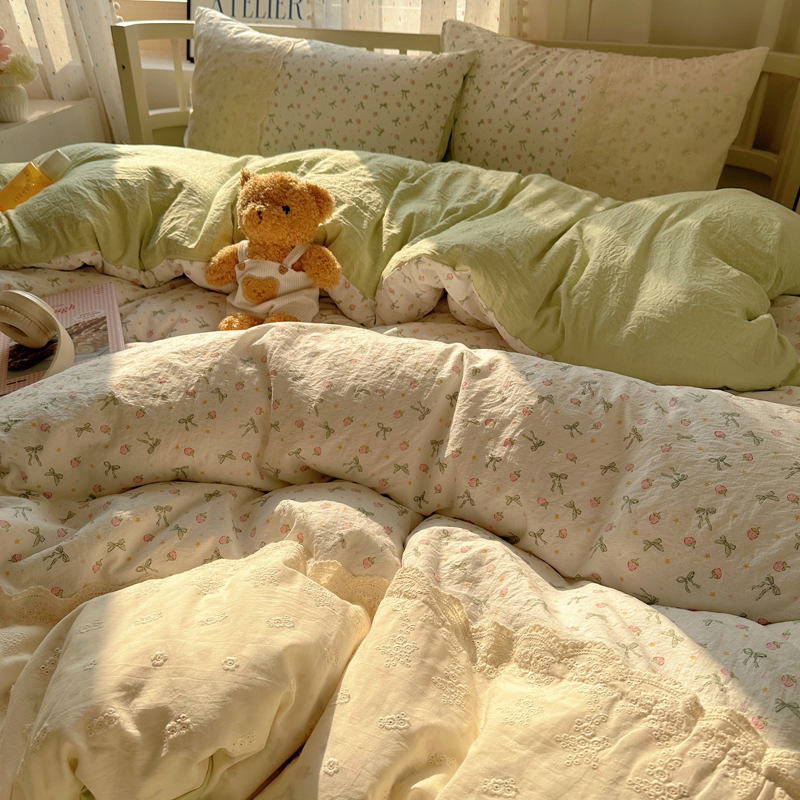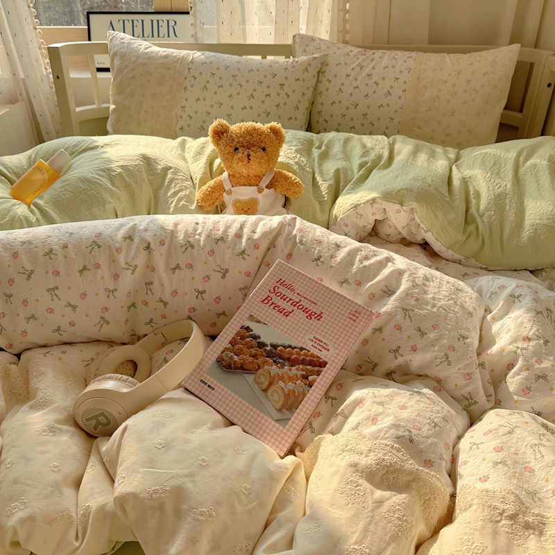 (总)顾里家纺 2026春夏新款ins韩风印花贝壳针双层纱四件套,啵啵蝴蝶结,啵啵猫咪,彩色啵啵,粉米兔,浆果梦,蓝条爱心,曲奇小熊,碎花兔熊,雾屿动物,小南瓜,星月童话,雪瑞纳仔,樱桃蝴蝶结,芋泥腊肠狗,栀夏小兔,治愈动物,治愈星星